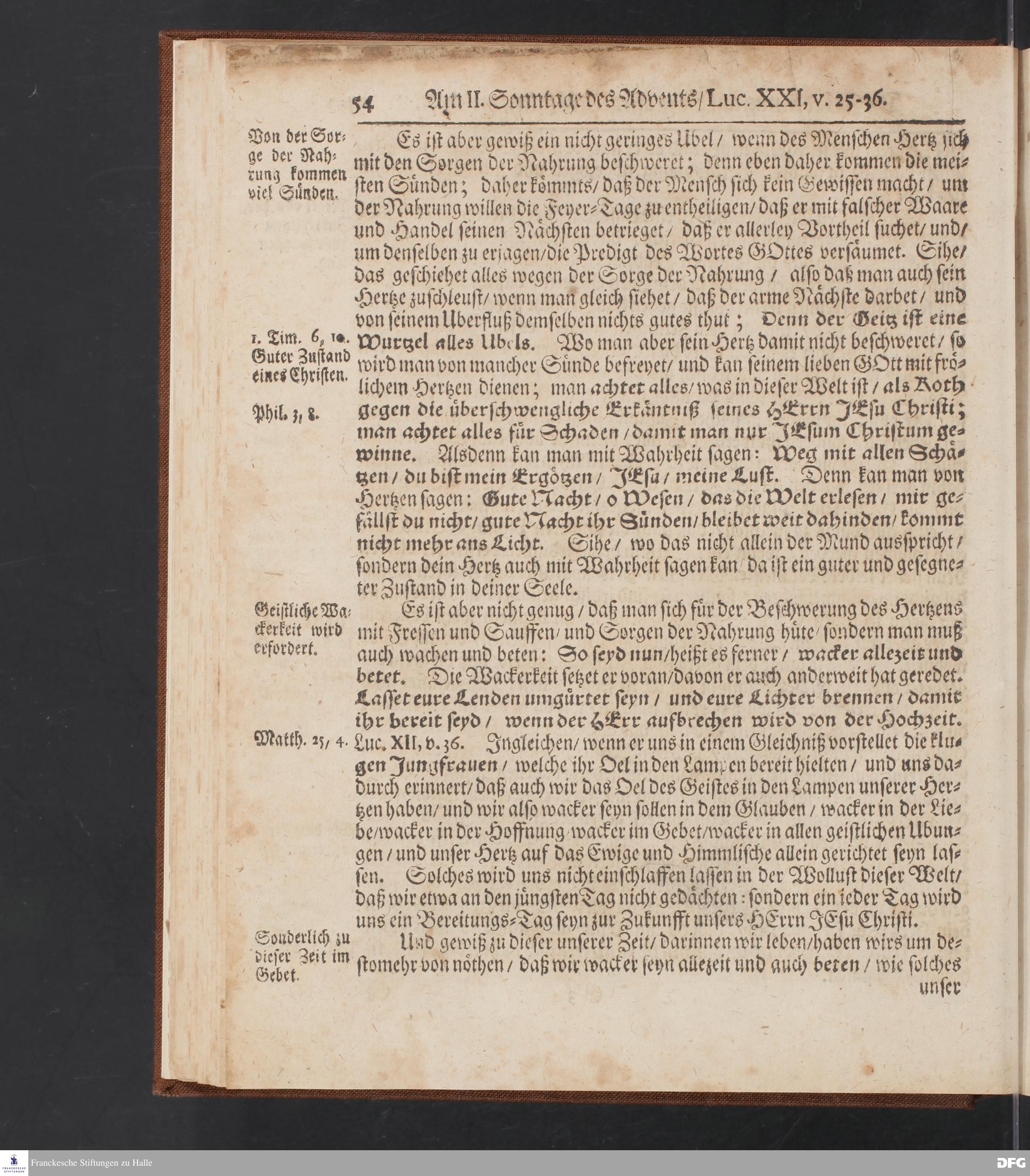 August Hermann Franckens S.Theol.Prof.und Past. Sonn= Fest= und Apostel=Tags=-Predigten / Darinnen Die zum wahren Christenthum gehörige nöthigste und vornehmste Materien abgehandelt sind; Nunmehro von neuen wieder durchgesehen / und mit einigen Predigten vermehret / Nebst den darzu nützlichen Registern. Die vierte EDITION. HALLE / gedruckt und verlegt im Wäysen=Hause / MDCCXV. Mit Königl.Preuß.und Churfl.Brandenb.Privil.