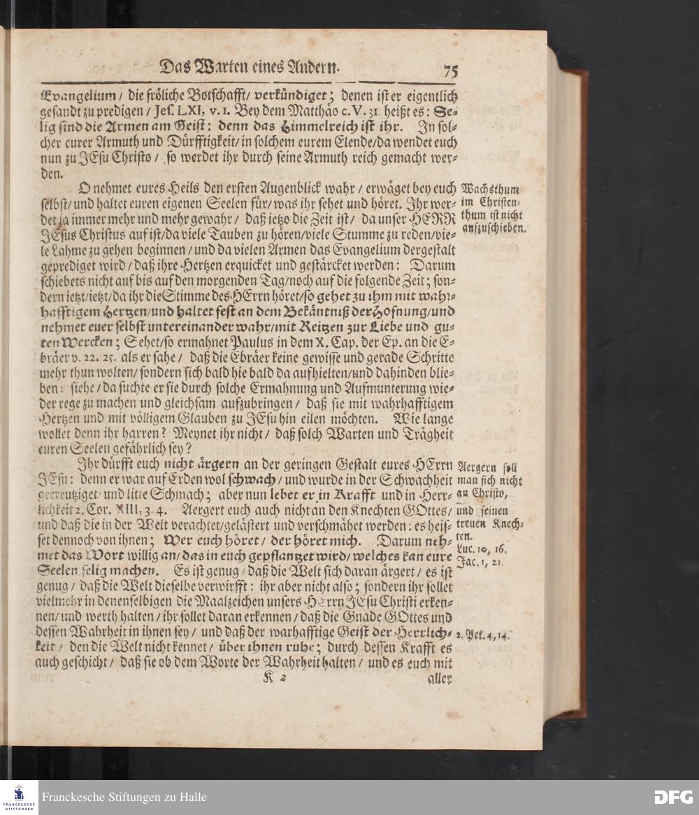 August Hermann Franckens S.Theol.Prof.und Past. Sonn= Fest= und Apostel=Tags=-Predigten / Darinnen Die zum wahren Christenthum gehörige nöthigste und vornehmste Materien abgehandelt sind; Nunmehro von neuen wieder durchgesehen / und mit einigen Predigten vermehret / Nebst den darzu nützlichen Registern. Die vierte EDITION. HALLE / gedruckt und verlegt im Wäysen=Hause / MDCCXV. Mit Königl.Preuß.und Churfl.Brandenb.Privil.