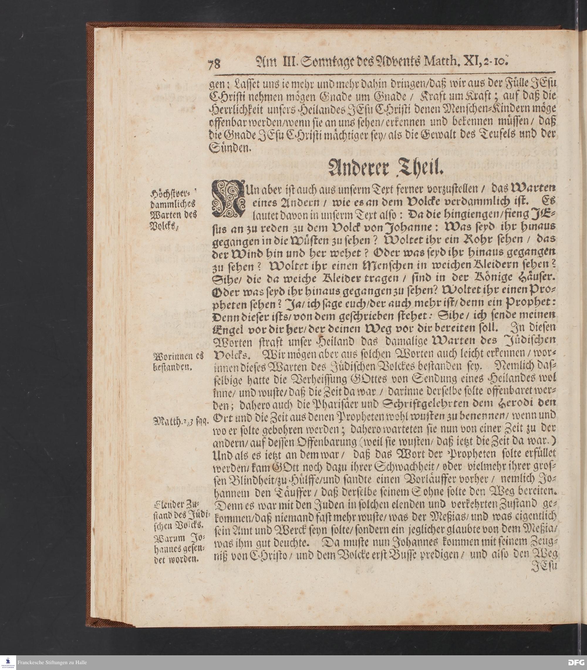 August Hermann Franckens S.Theol.Prof.und Past. Sonn= Fest= und Apostel=Tags=-Predigten / Darinnen Die zum wahren Christenthum gehörige nöthigste und vornehmste Materien abgehandelt sind; Nunmehro von neuen wieder durchgesehen / und mit einigen Predigten vermehret / Nebst den darzu nützlichen Registern. Die vierte EDITION. HALLE / gedruckt und verlegt im Wäysen=Hause / MDCCXV. Mit Königl.Preuß.und Churfl.Brandenb.Privil.