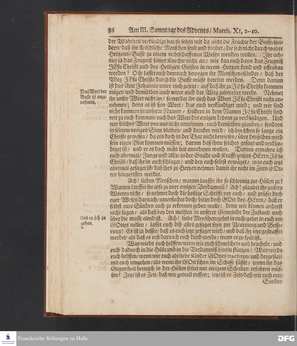 August Hermann Franckens S.Theol.Prof.und Past. Sonn= Fest= und Apostel=Tags=-Predigten / Darinnen Die zum wahren Christenthum gehörige nöthigste und vornehmste Materien abgehandelt sind; Nunmehro von neuen wieder durchgesehen / und mit einigen Predigten vermehret / Nebst den darzu nützlichen Registern. Die vierte EDITION. HALLE / gedruckt und verlegt im Wäysen=Hause / MDCCXV. Mit Königl.Preuß.und Churfl.Brandenb.Privil.