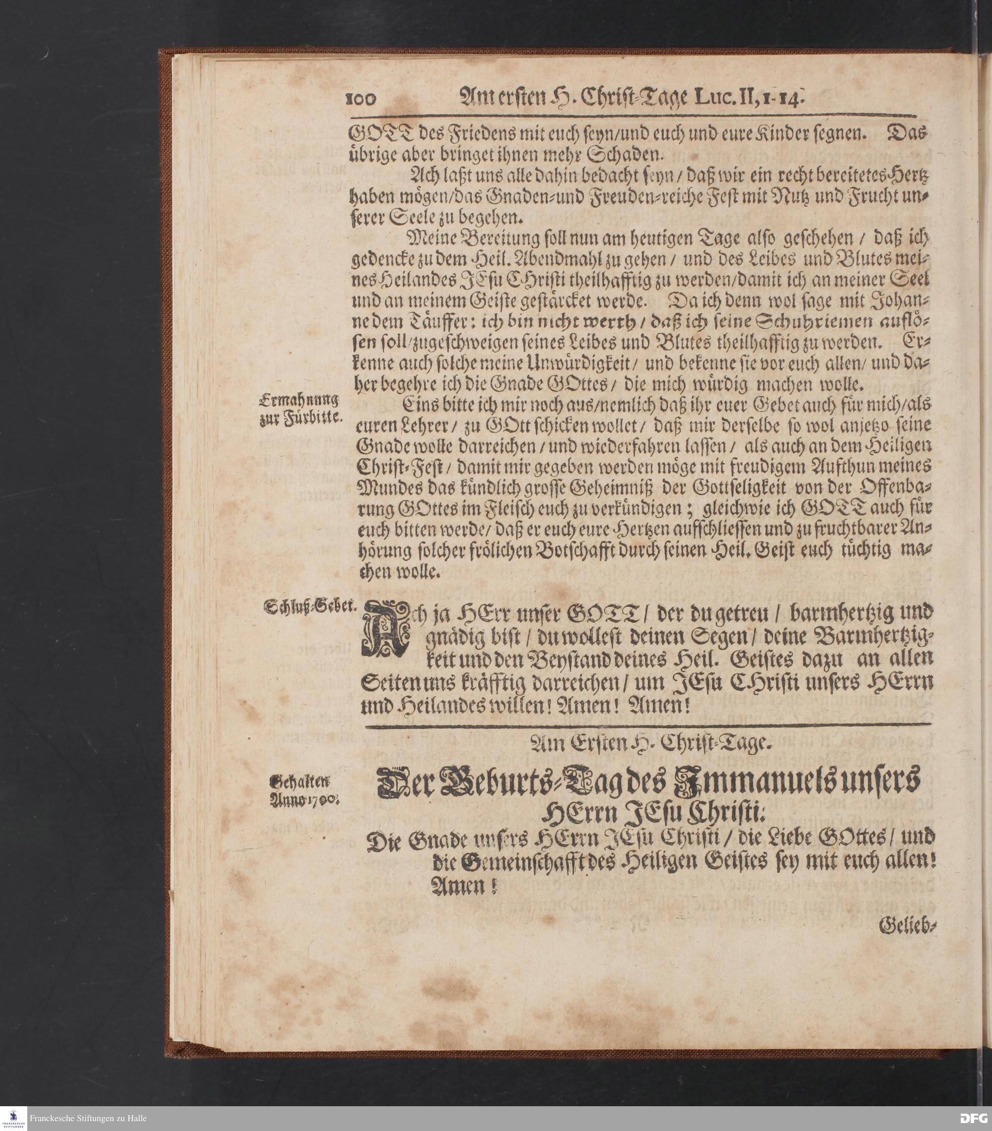 August Hermann Franckens S.Theol.Prof.und Past. Sonn= Fest= und Apostel=Tags=-Predigten / Darinnen Die zum wahren Christenthum gehörige nöthigste und vornehmste Materien abgehandelt sind; Nunmehro von neuen wieder durchgesehen / und mit einigen Predigten vermehret / Nebst den darzu nützlichen Registern. Die vierte EDITION. HALLE / gedruckt und verlegt im Wäysen=Hause / MDCCXV. Mit Königl.Preuß.und Churfl.Brandenb.Privil.