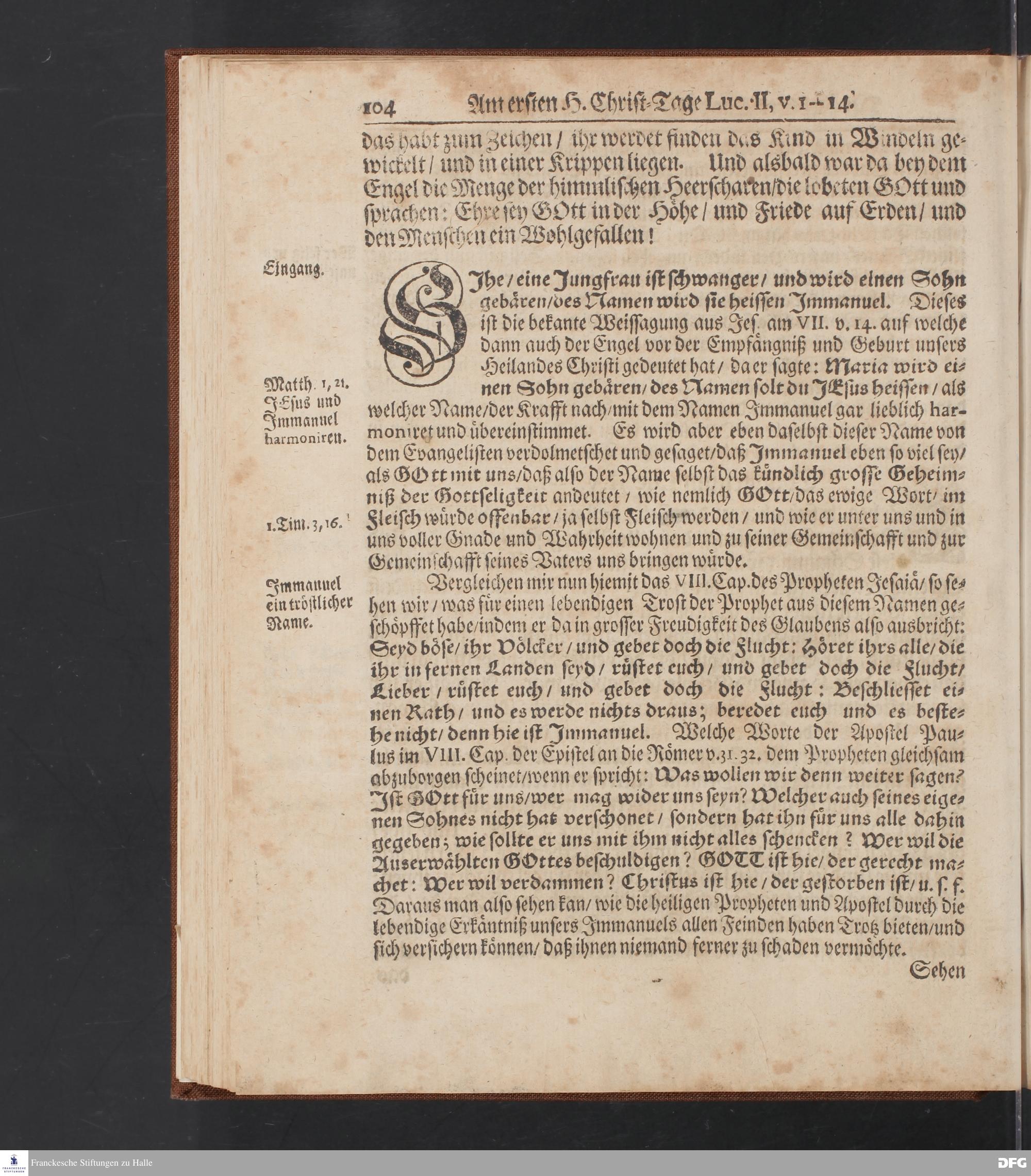 August Hermann Franckens S.Theol.Prof.und Past. Sonn= Fest= und Apostel=Tags=-Predigten / Darinnen Die zum wahren Christenthum gehörige nöthigste und vornehmste Materien abgehandelt sind; Nunmehro von neuen wieder durchgesehen / und mit einigen Predigten vermehret / Nebst den darzu nützlichen Registern. Die vierte EDITION. HALLE / gedruckt und verlegt im Wäysen=Hause / MDCCXV. Mit Königl.Preuß.und Churfl.Brandenb.Privil.