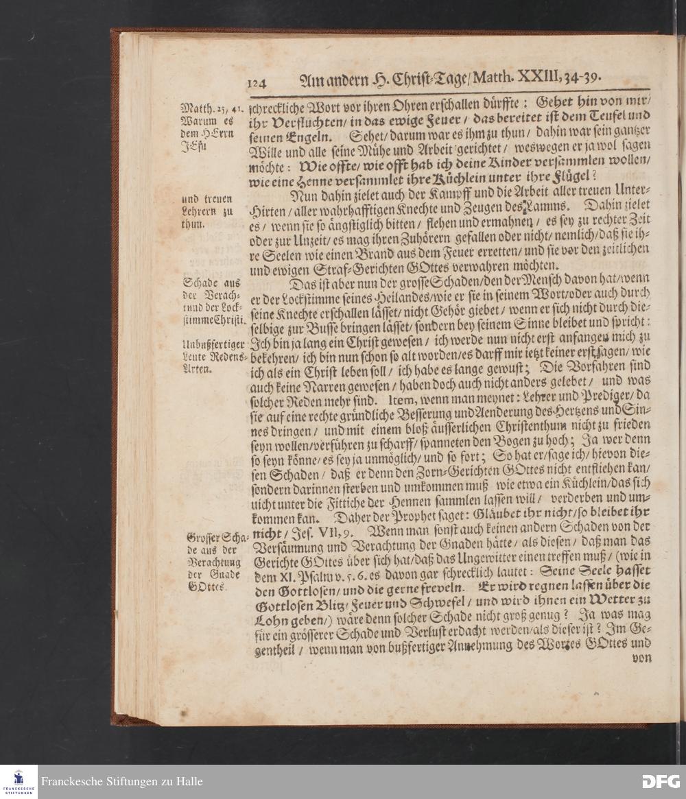 August Hermann Franckens S.Theol.Prof.und Past. Sonn= Fest= und Apostel=Tags=-Predigten / Darinnen Die zum wahren Christenthum gehörige nöthigste und vornehmste Materien abgehandelt sind; Nunmehro von neuen wieder durchgesehen / und mit einigen Predigten vermehret / Nebst den darzu nützlichen Registern. Die vierte EDITION. HALLE / gedruckt und verlegt im Wäysen=Hause / MDCCXV. Mit Königl.Preuß.und Churfl.Brandenb.Privil.