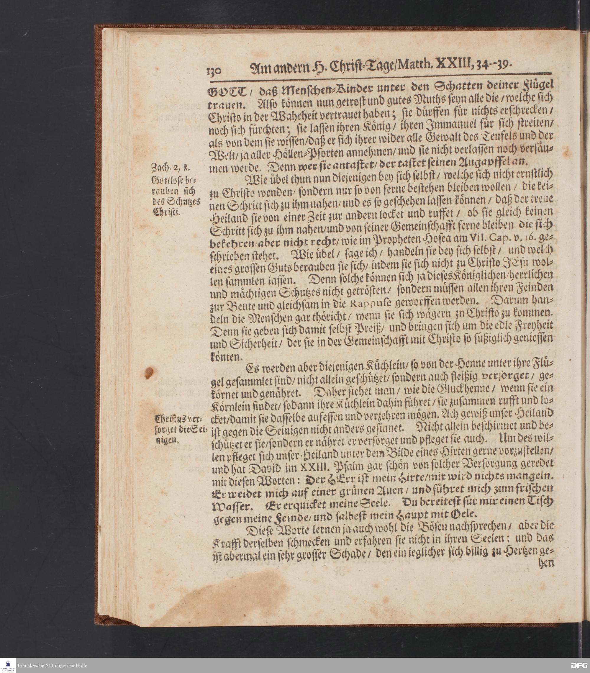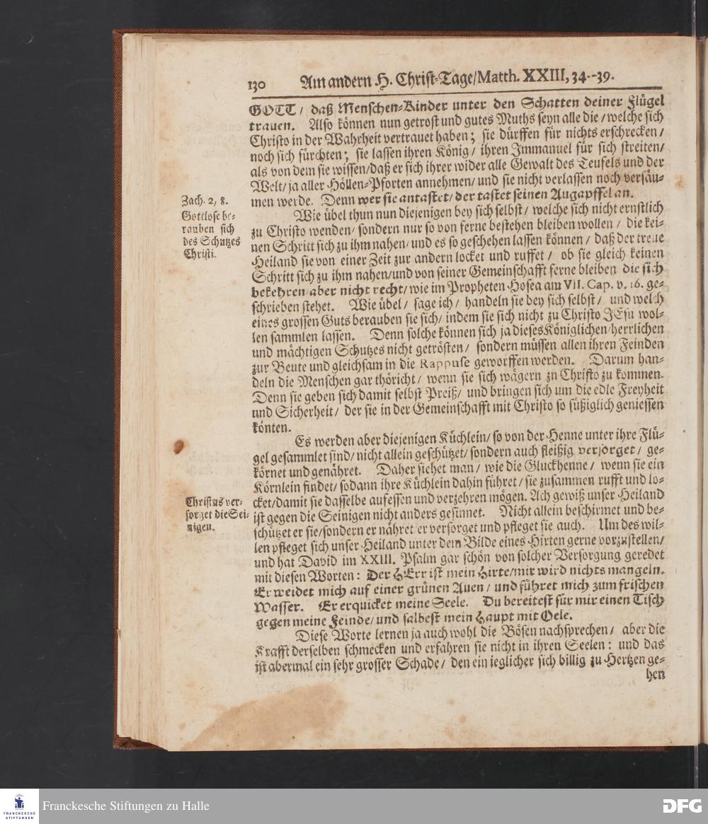 August Hermann Franckens S.Theol.Prof.und Past. Sonn= Fest= und Apostel=Tags=-Predigten / Darinnen Die zum wahren Christenthum gehörige nöthigste und vornehmste Materien abgehandelt sind; Nunmehro von neuen wieder durchgesehen / und mit einigen Predigten vermehret / Nebst den darzu nützlichen Registern. Die vierte EDITION. HALLE / gedruckt und verlegt im Wäysen=Hause / MDCCXV. Mit Königl.Preuß.und Churfl.Brandenb.Privil.