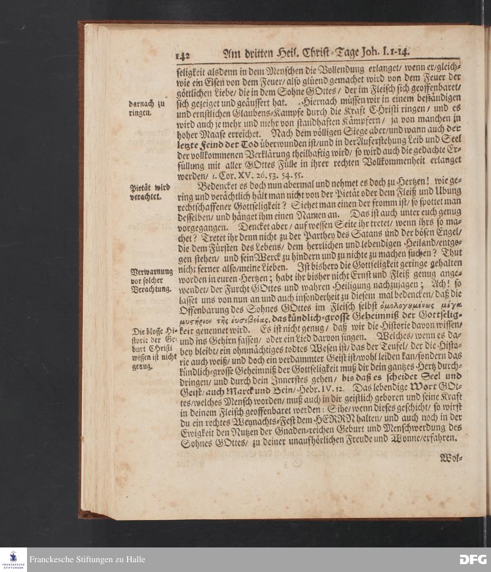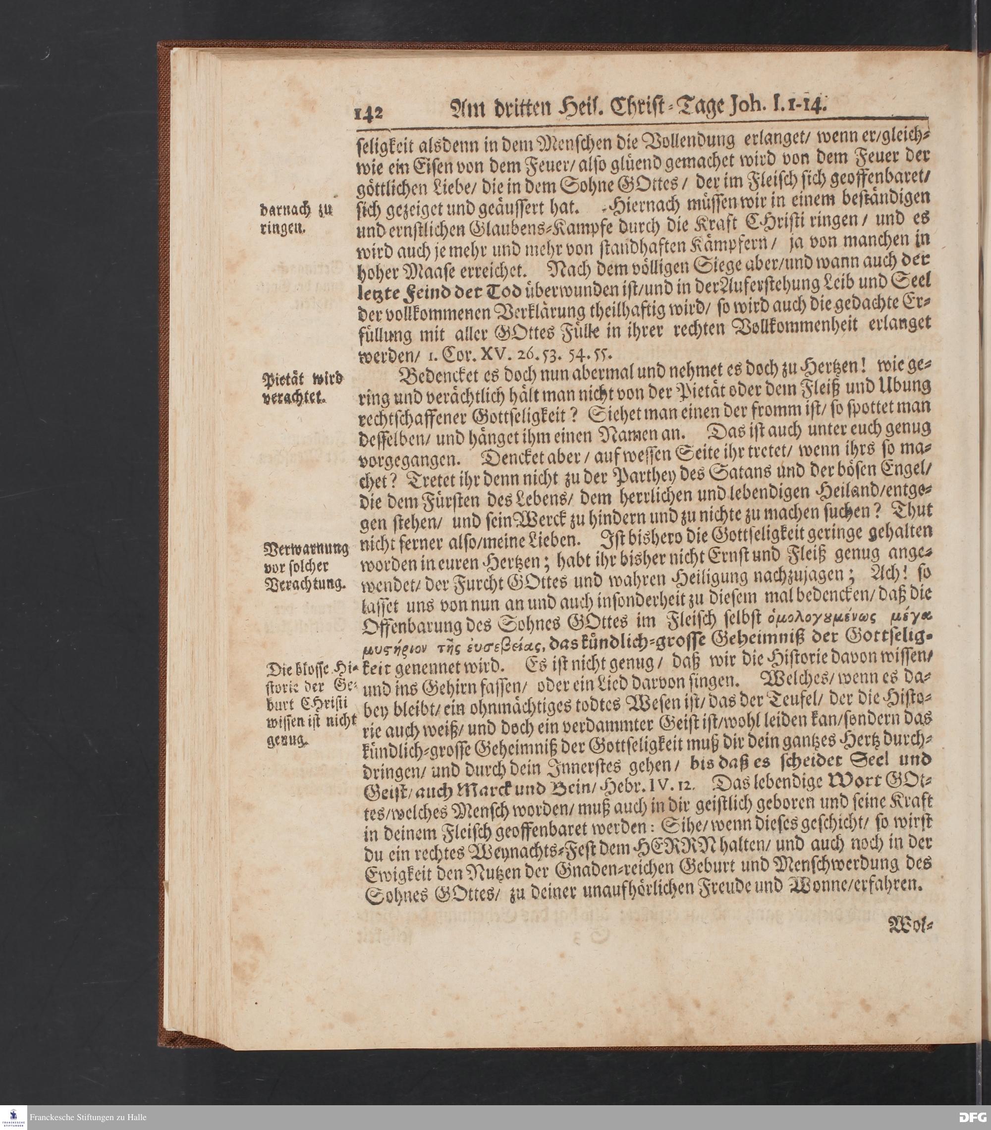 August Hermann Franckens S.Theol.Prof.und Past. Sonn= Fest= und Apostel=Tags=-Predigten / Darinnen Die zum wahren Christenthum gehörige nöthigste und vornehmste Materien abgehandelt sind; Nunmehro von neuen wieder durchgesehen / und mit einigen Predigten vermehret / Nebst den darzu nützlichen Registern. Die vierte EDITION. HALLE / gedruckt und verlegt im Wäysen=Hause / MDCCXV. Mit Königl.Preuß.und Churfl.Brandenb.Privil.
