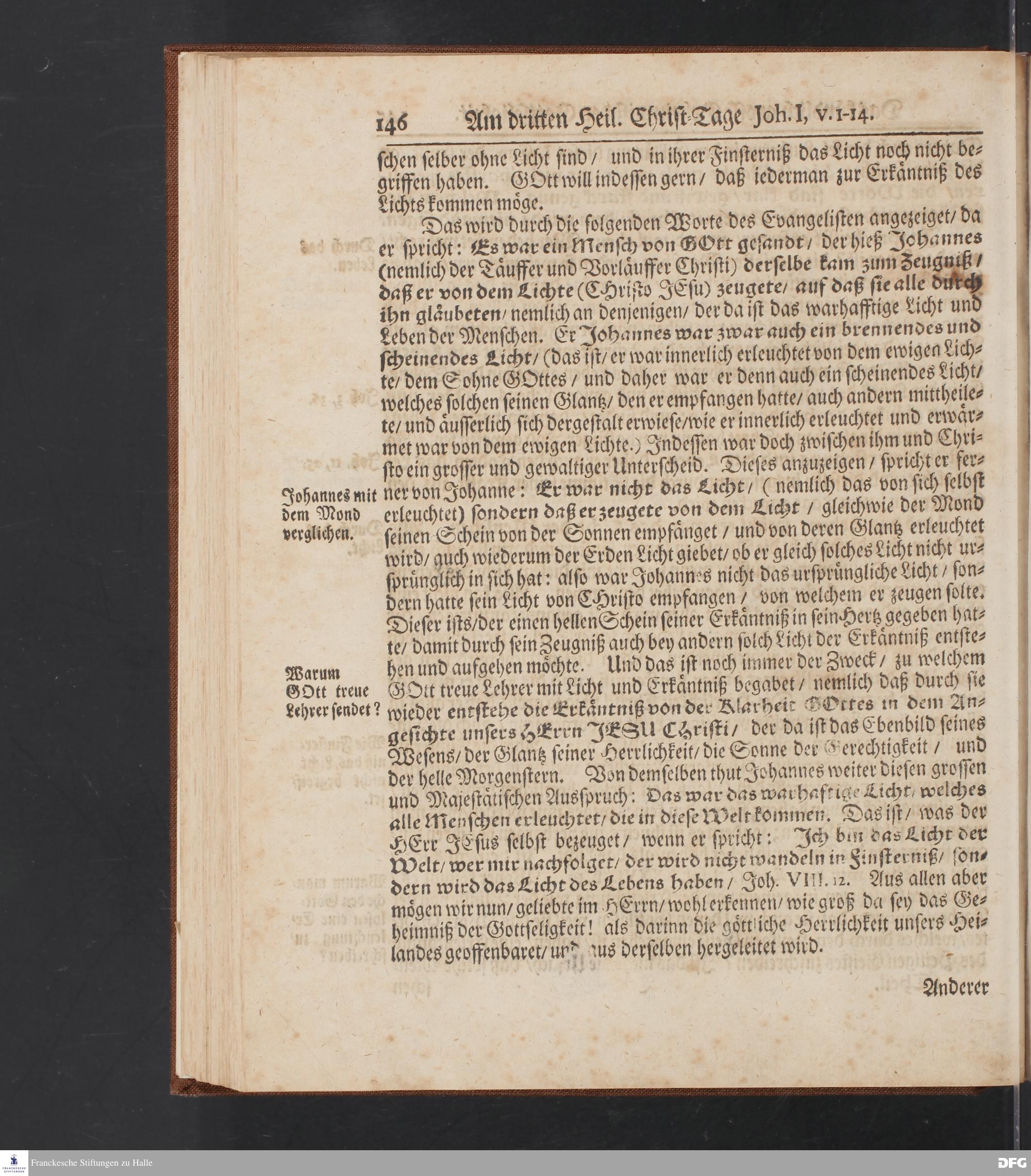 August Hermann Franckens S.Theol.Prof.und Past. Sonn= Fest= und Apostel=Tags=-Predigten / Darinnen Die zum wahren Christenthum gehörige nöthigste und vornehmste Materien abgehandelt sind; Nunmehro von neuen wieder durchgesehen / und mit einigen Predigten vermehret / Nebst den darzu nützlichen Registern. Die vierte EDITION. HALLE / gedruckt und verlegt im Wäysen=Hause / MDCCXV. Mit Königl.Preuß.und Churfl.Brandenb.Privil.