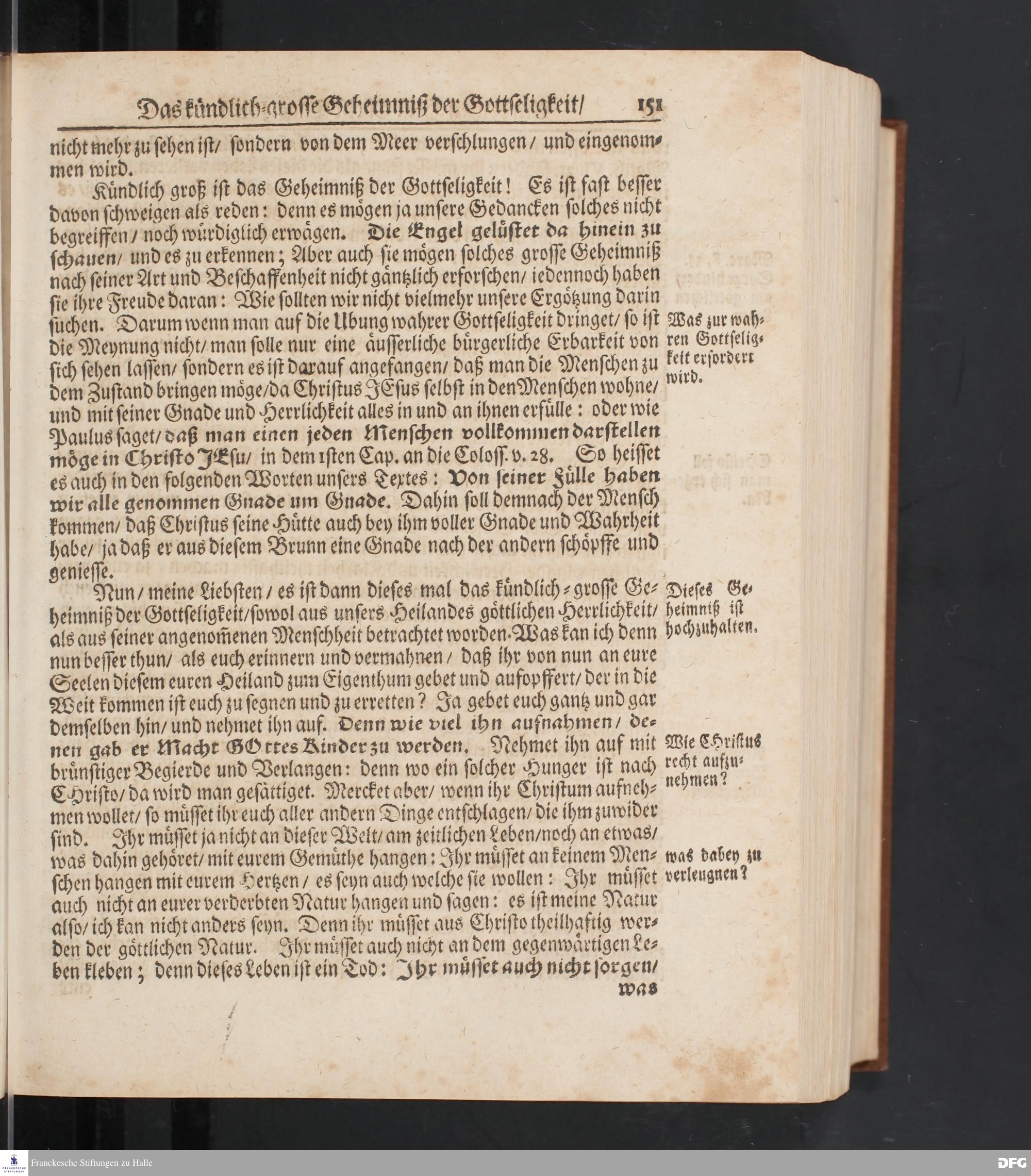August Hermann Franckens S.Theol.Prof.und Past. Sonn= Fest= und Apostel=Tags=-Predigten / Darinnen Die zum wahren Christenthum gehörige nöthigste und vornehmste Materien abgehandelt sind; Nunmehro von neuen wieder durchgesehen / und mit einigen Predigten vermehret / Nebst den darzu nützlichen Registern. Die vierte EDITION. HALLE / gedruckt und verlegt im Wäysen=Hause / MDCCXV. Mit Königl.Preuß.und Churfl.Brandenb.Privil.