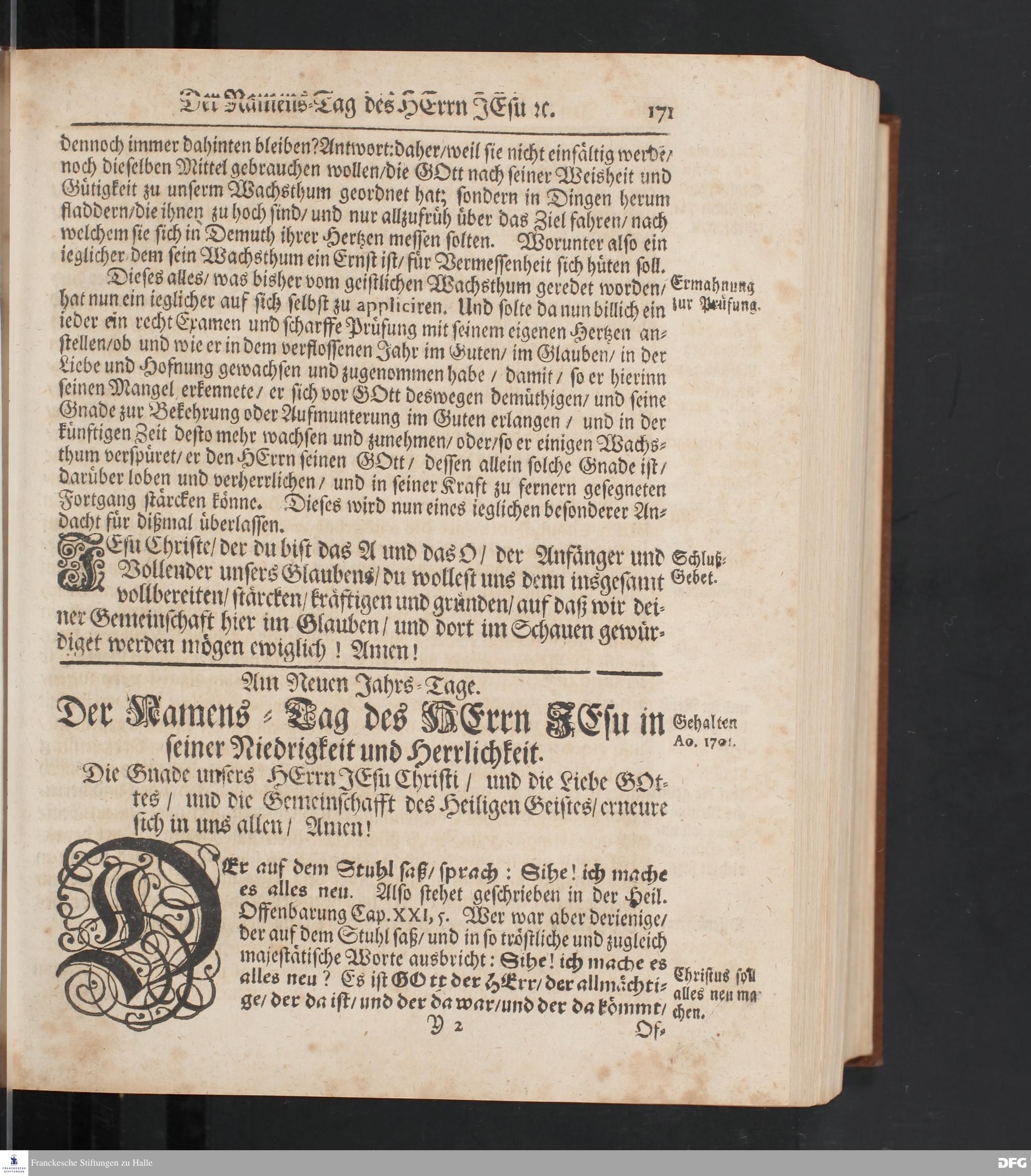 August Hermann Franckens S.Theol.Prof.und Past. Sonn= Fest= und Apostel=Tags=-Predigten / Darinnen Die zum wahren Christenthum gehörige nöthigste und vornehmste Materien abgehandelt sind; Nunmehro von neuen wieder durchgesehen / und mit einigen Predigten vermehret / Nebst den darzu nützlichen Registern. Die vierte EDITION. HALLE / gedruckt und verlegt im Wäysen=Hause / MDCCXV. Mit Königl.Preuß.und Churfl.Brandenb.Privil.