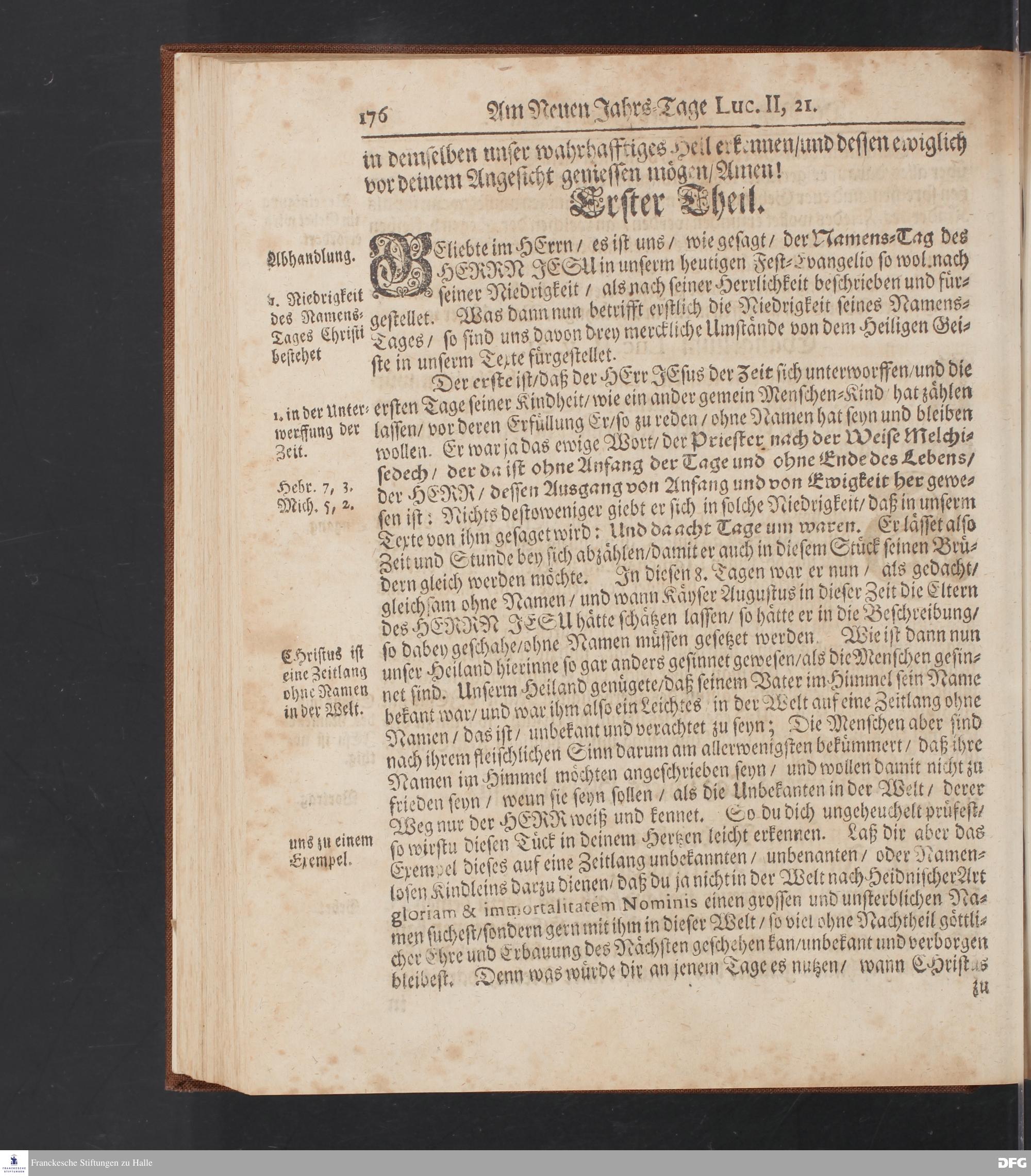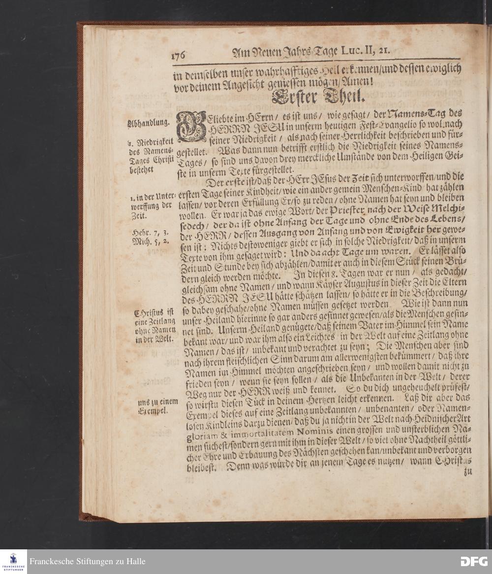 August Hermann Franckens S.Theol.Prof.und Past. Sonn= Fest= und Apostel=Tags=-Predigten / Darinnen Die zum wahren Christenthum gehörige nöthigste und vornehmste Materien abgehandelt sind; Nunmehro von neuen wieder durchgesehen / und mit einigen Predigten vermehret / Nebst den darzu nützlichen Registern. Die vierte EDITION. HALLE / gedruckt und verlegt im Wäysen=Hause / MDCCXV. Mit Königl.Preuß.und Churfl.Brandenb.Privil.