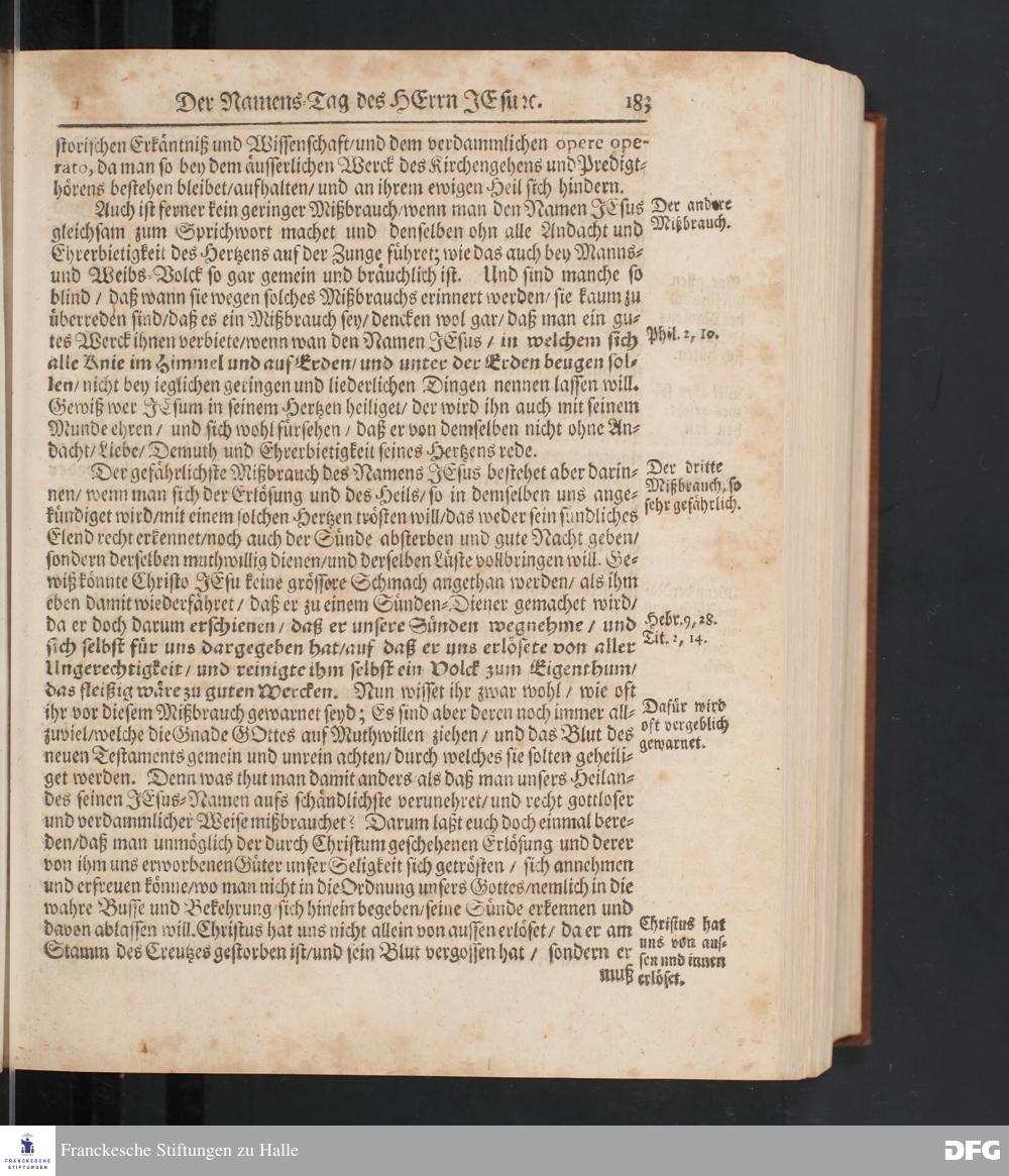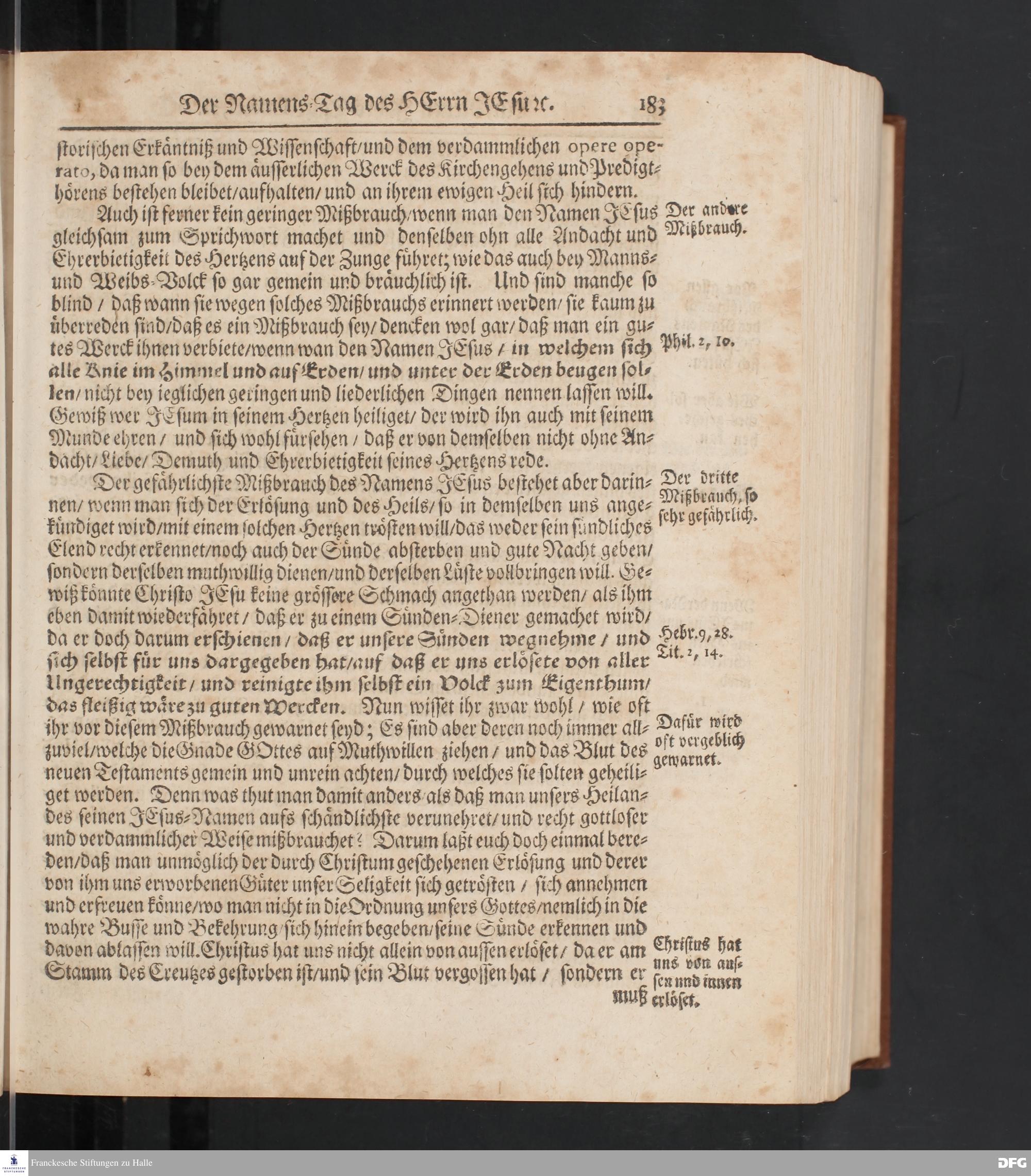August Hermann Franckens S.Theol.Prof.und Past. Sonn= Fest= und Apostel=Tags=-Predigten / Darinnen Die zum wahren Christenthum gehörige nöthigste und vornehmste Materien abgehandelt sind; Nunmehro von neuen wieder durchgesehen / und mit einigen Predigten vermehret / Nebst den darzu nützlichen Registern. Die vierte EDITION. HALLE / gedruckt und verlegt im Wäysen=Hause / MDCCXV. Mit Königl.Preuß.und Churfl.Brandenb.Privil.
