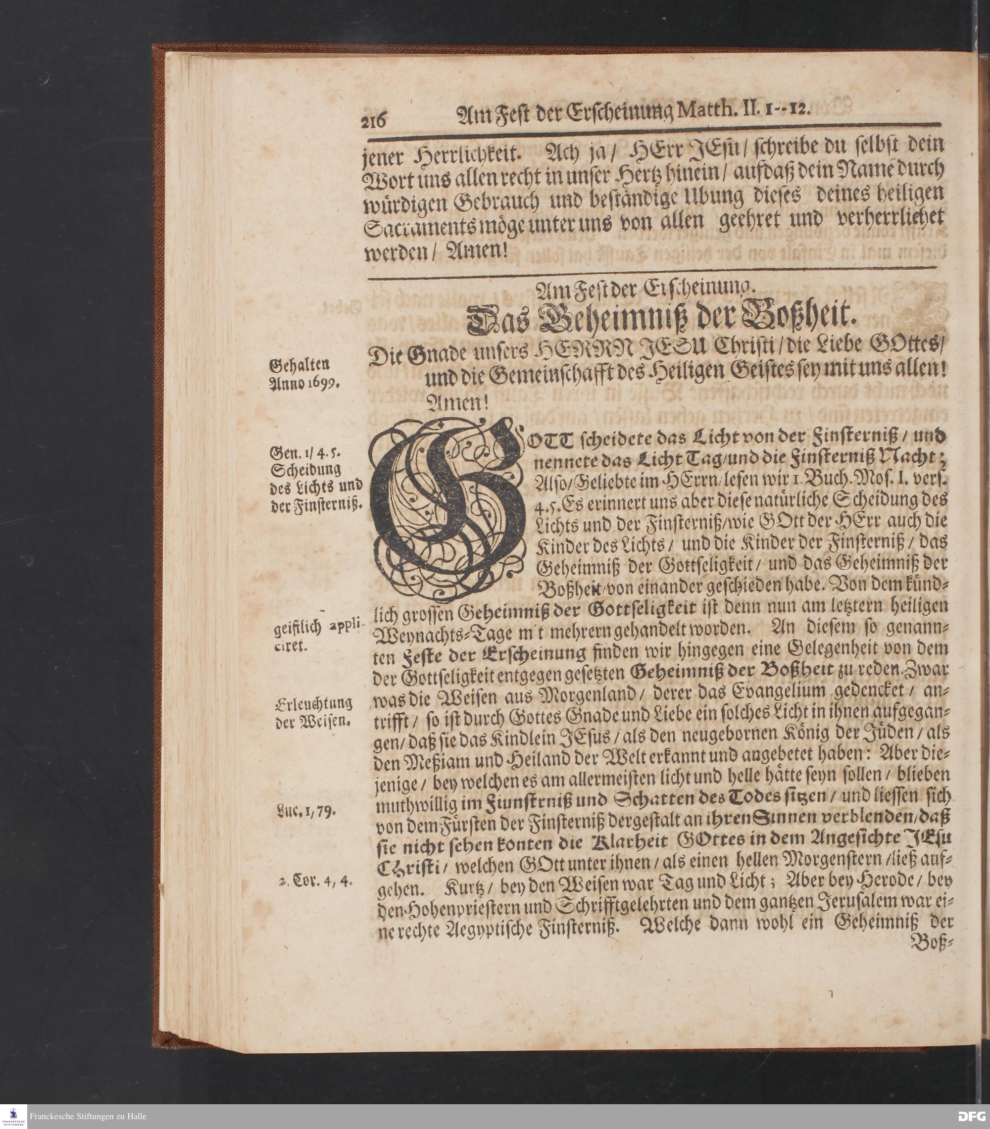 August Hermann Franckens S.Theol.Prof.und Past. Sonn= Fest= und Apostel=Tags=-Predigten / Darinnen Die zum wahren Christenthum gehörige nöthigste und vornehmste Materien abgehandelt sind; Nunmehro von neuen wieder durchgesehen / und mit einigen Predigten vermehret / Nebst den darzu nützlichen Registern. Die vierte EDITION. HALLE / gedruckt und verlegt im Wäysen=Hause / MDCCXV. Mit Königl.Preuß.und Churfl.Brandenb.Privil.