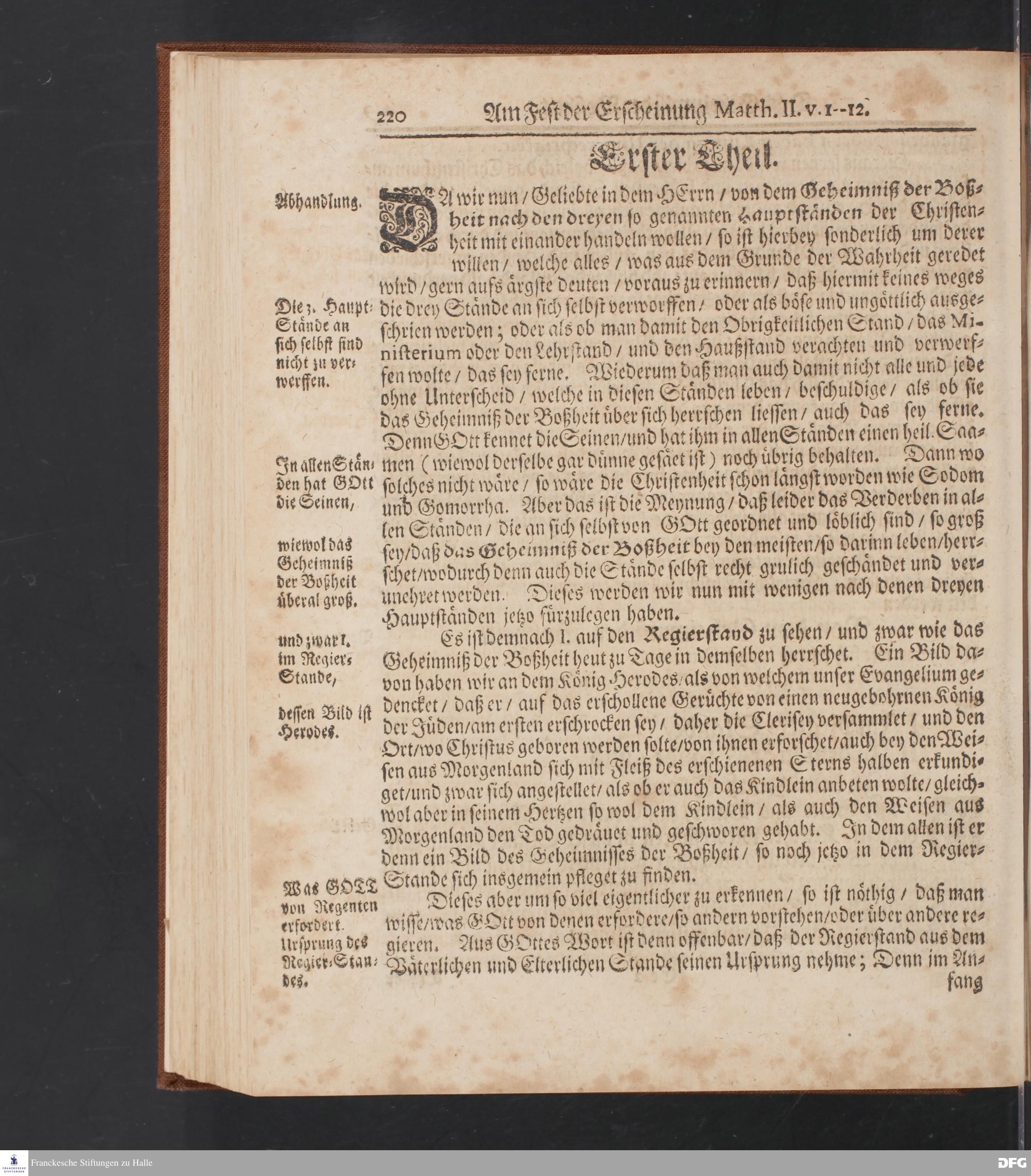 August Hermann Franckens S.Theol.Prof.und Past. Sonn= Fest= und Apostel=Tags=-Predigten / Darinnen Die zum wahren Christenthum gehörige nöthigste und vornehmste Materien abgehandelt sind; Nunmehro von neuen wieder durchgesehen / und mit einigen Predigten vermehret / Nebst den darzu nützlichen Registern. Die vierte EDITION. HALLE / gedruckt und verlegt im Wäysen=Hause / MDCCXV. Mit Königl.Preuß.und Churfl.Brandenb.Privil.