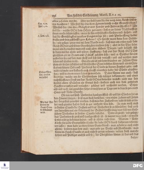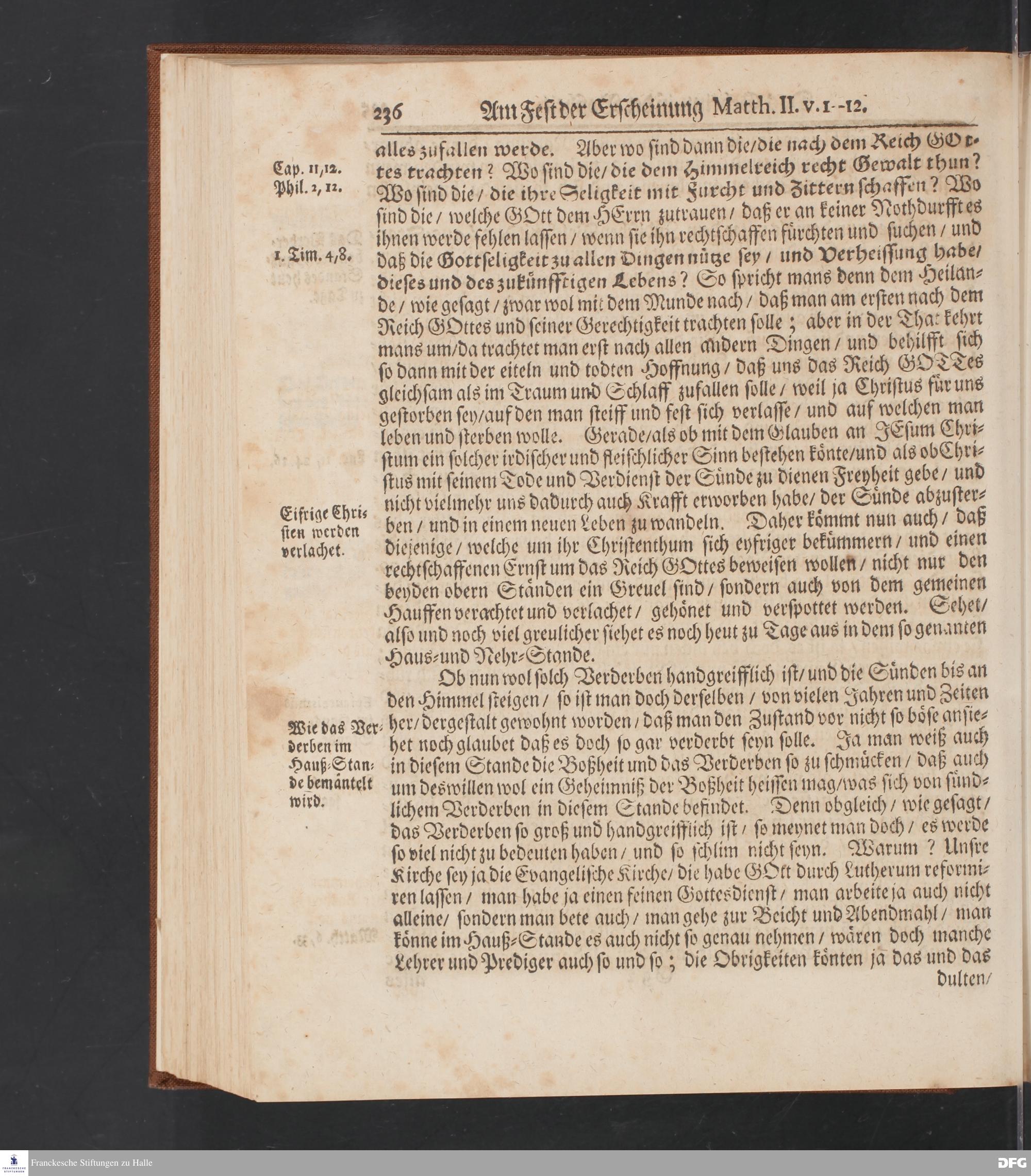 August Hermann Franckens S.Theol.Prof.und Past. Sonn= Fest= und Apostel=Tags=-Predigten / Darinnen Die zum wahren Christenthum gehörige nöthigste und vornehmste Materien abgehandelt sind; Nunmehro von neuen wieder durchgesehen / und mit einigen Predigten vermehret / Nebst den darzu nützlichen Registern. Die vierte EDITION. HALLE / gedruckt und verlegt im Wäysen=Hause / MDCCXV. Mit Königl.Preuß.und Churfl.Brandenb.Privil.