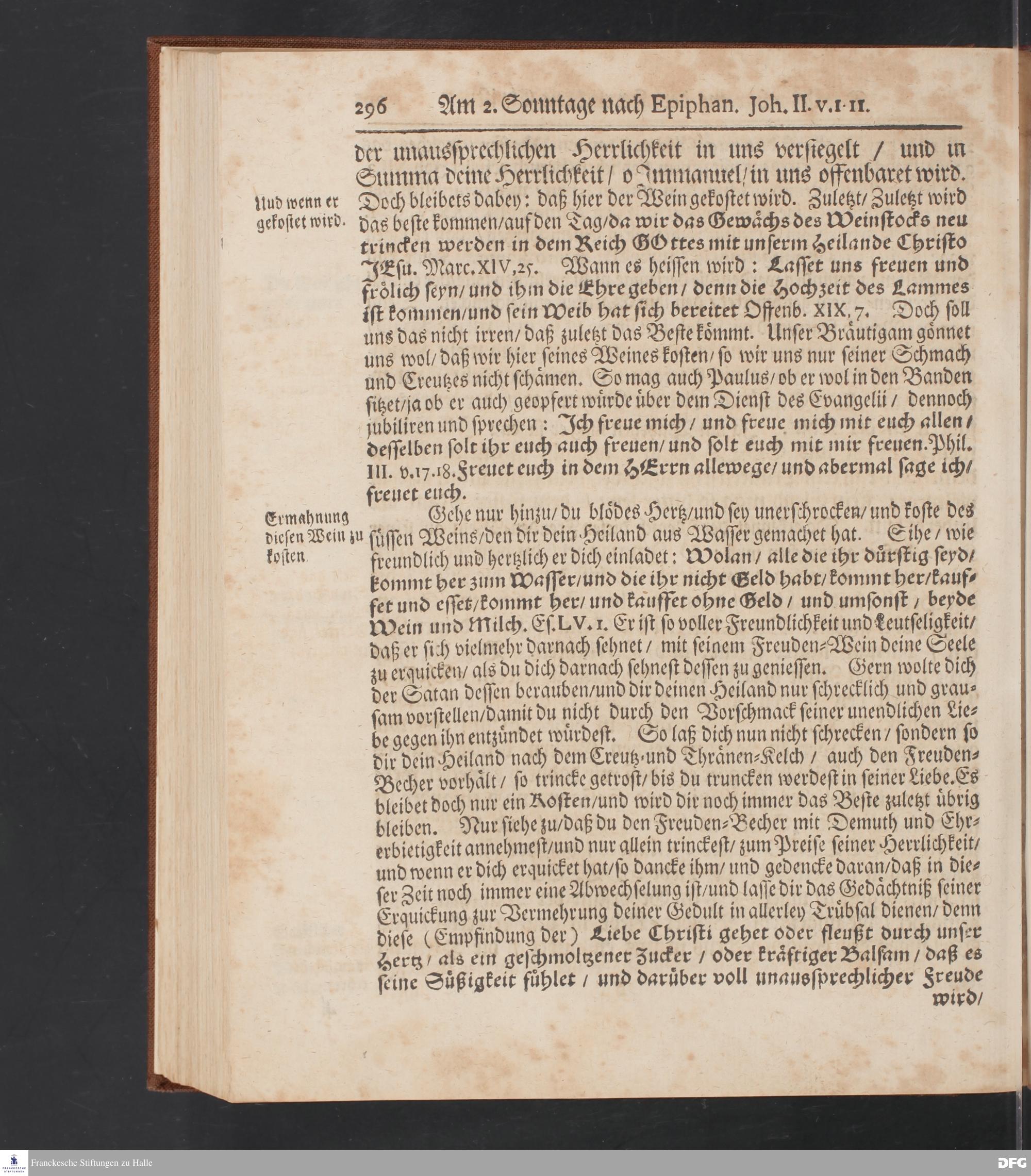 August Hermann Franckens S.Theol.Prof.und Past. Sonn= Fest= und Apostel=Tags=-Predigten / Darinnen Die zum wahren Christenthum gehörige nöthigste und vornehmste Materien abgehandelt sind; Nunmehro von neuen wieder durchgesehen / und mit einigen Predigten vermehret / Nebst den darzu nützlichen Registern. Die vierte EDITION. HALLE / gedruckt und verlegt im Wäysen=Hause / MDCCXV. Mit Königl.Preuß.und Churfl.Brandenb.Privil.