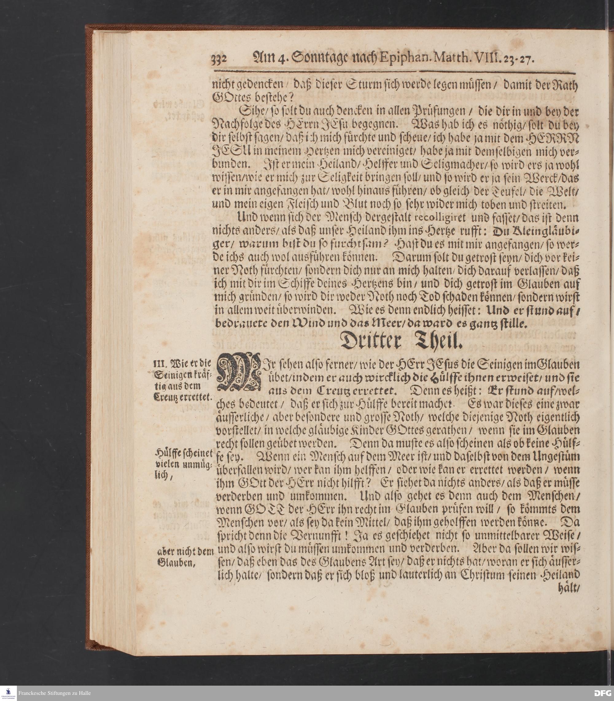 August Hermann Franckens S.Theol.Prof.und Past. Sonn= Fest= und Apostel=Tags=-Predigten / Darinnen Die zum wahren Christenthum gehörige nöthigste und vornehmste Materien abgehandelt sind; Nunmehro von neuen wieder durchgesehen / und mit einigen Predigten vermehret / Nebst den darzu nützlichen Registern. Die vierte EDITION. HALLE / gedruckt und verlegt im Wäysen=Hause / MDCCXV. Mit Königl.Preuß.und Churfl.Brandenb.Privil.