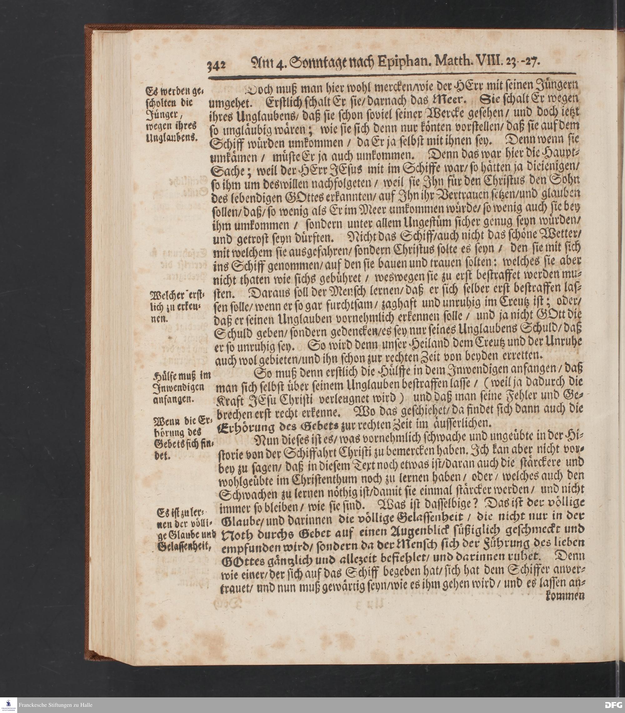 August Hermann Franckens S.Theol.Prof.und Past. Sonn= Fest= und Apostel=Tags=-Predigten / Darinnen Die zum wahren Christenthum gehörige nöthigste und vornehmste Materien abgehandelt sind; Nunmehro von neuen wieder durchgesehen / und mit einigen Predigten vermehret / Nebst den darzu nützlichen Registern. Die vierte EDITION. HALLE / gedruckt und verlegt im Wäysen=Hause / MDCCXV. Mit Königl.Preuß.und Churfl.Brandenb.Privil.