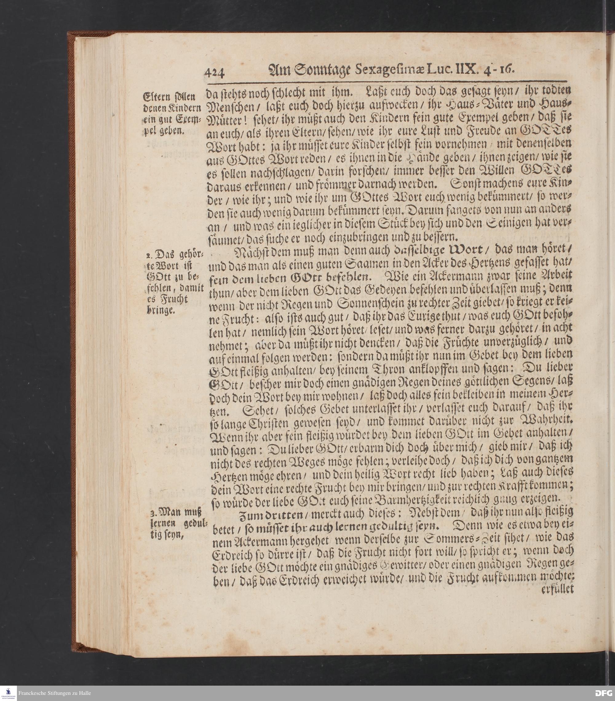 August Hermann Franckens S.Theol.Prof.und Past. Sonn= Fest= und Apostel=Tags=-Predigten / Darinnen Die zum wahren Christenthum gehörige nöthigste und vornehmste Materien abgehandelt sind; Nunmehro von neuen wieder durchgesehen / und mit einigen Predigten vermehret / Nebst den darzu nützlichen Registern. Die vierte EDITION. HALLE / gedruckt und verlegt im Wäysen=Hause / MDCCXV. Mit Königl.Preuß.und Churfl.Brandenb.Privil.