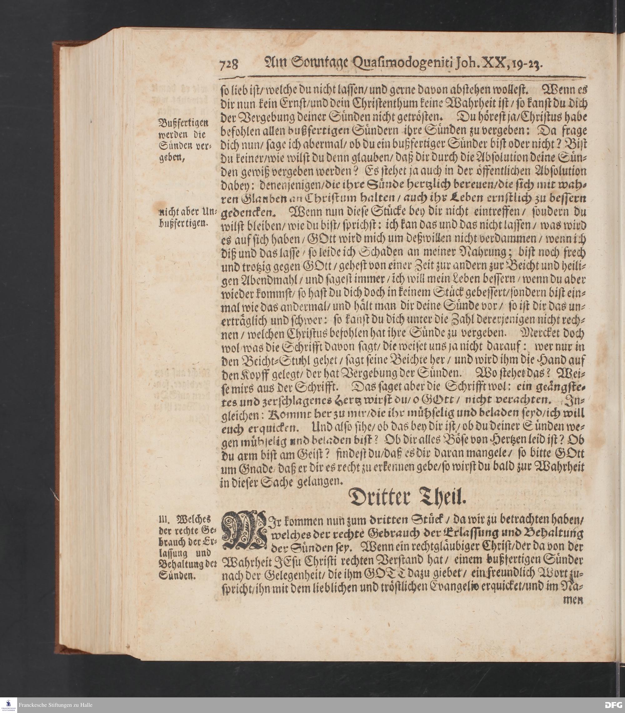 August Hermann Franckens S.Theol.Prof.und Past. Sonn= Fest= und Apostel=Tags=-Predigten / Darinnen Die zum wahren Christenthum gehörige nöthigste und vornehmste Materien abgehandelt sind; Nunmehro von neuen wieder durchgesehen / und mit einigen Predigten vermehret / Nebst den darzu nützlichen Registern. Die vierte EDITION. HALLE / gedruckt und verlegt im Wäysen=Hause / MDCCXV. Mit Königl.Preuß.und Churfl.Brandenb.Privil.