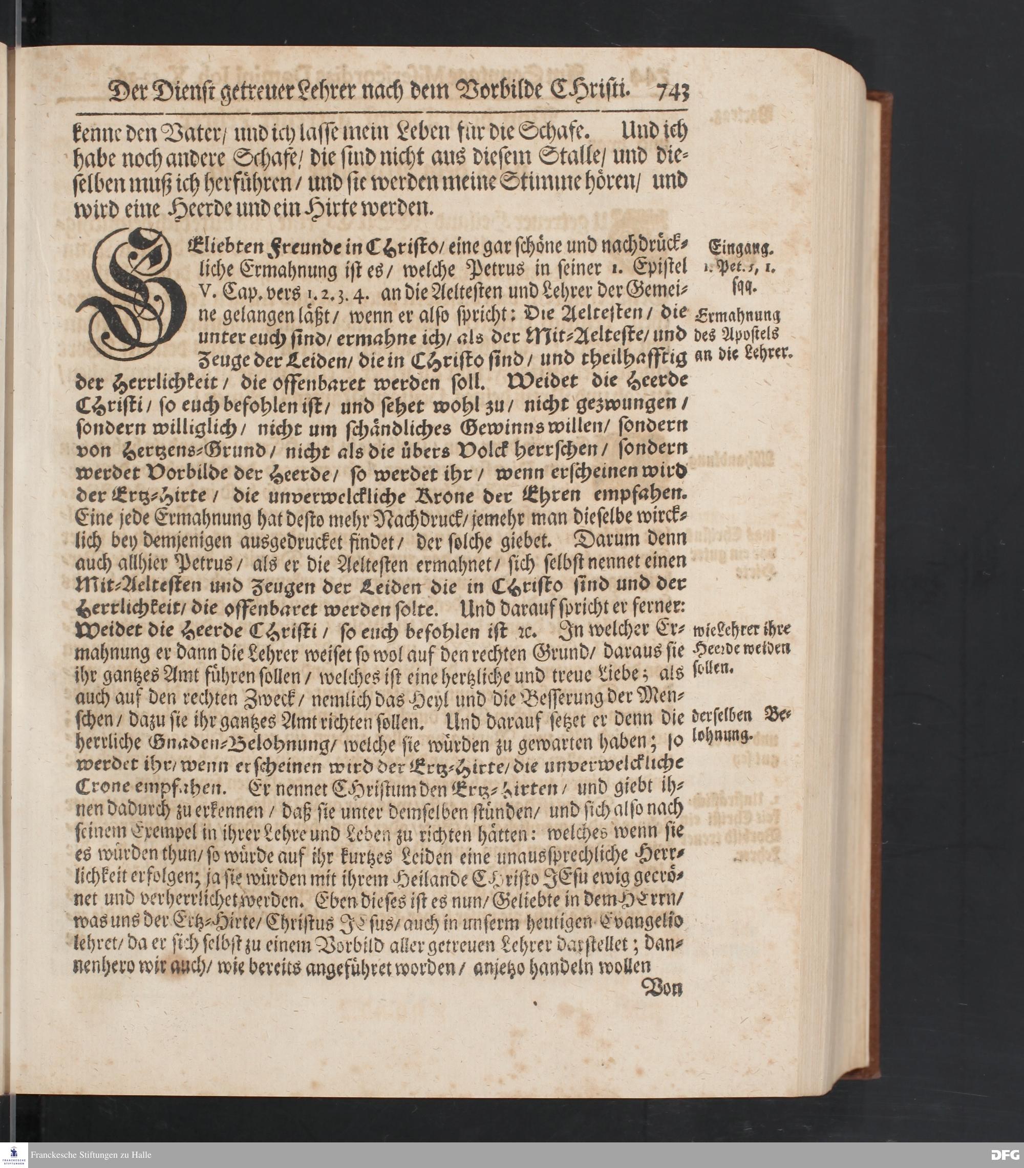 August Hermann Franckens S.Theol.Prof.und Past. Sonn= Fest= und Apostel=Tags=-Predigten / Darinnen Die zum wahren Christenthum gehörige nöthigste und vornehmste Materien abgehandelt sind; Nunmehro von neuen wieder durchgesehen / und mit einigen Predigten vermehret / Nebst den darzu nützlichen Registern. Die vierte EDITION. HALLE / gedruckt und verlegt im Wäysen=Hause / MDCCXV. Mit Königl.Preuß.und Churfl.Brandenb.Privil.