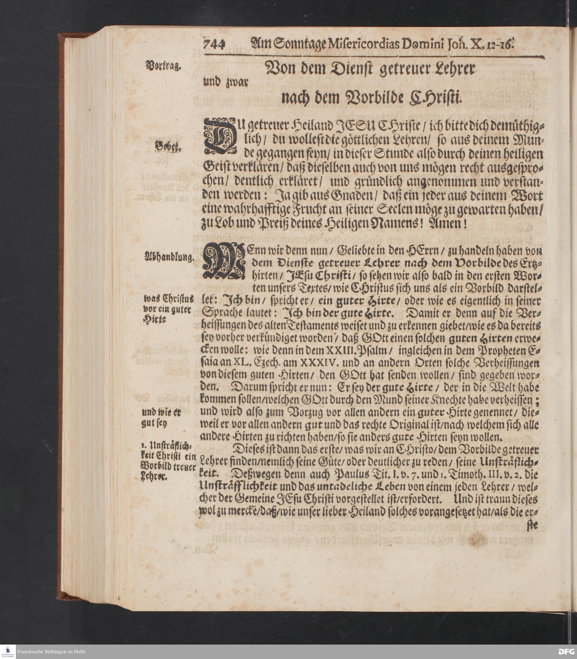 August Hermann Franckens S.Theol.Prof.und Past. Sonn= Fest= und Apostel=Tags=-Predigten / Darinnen Die zum wahren Christenthum gehörige nöthigste und vornehmste Materien abgehandelt sind; Nunmehro von neuen wieder durchgesehen / und mit einigen Predigten vermehret / Nebst den darzu nützlichen Registern. Die vierte EDITION. HALLE / gedruckt und verlegt im Wäysen=Hause / MDCCXV. Mit Königl.Preuß.und Churfl.Brandenb.Privil.