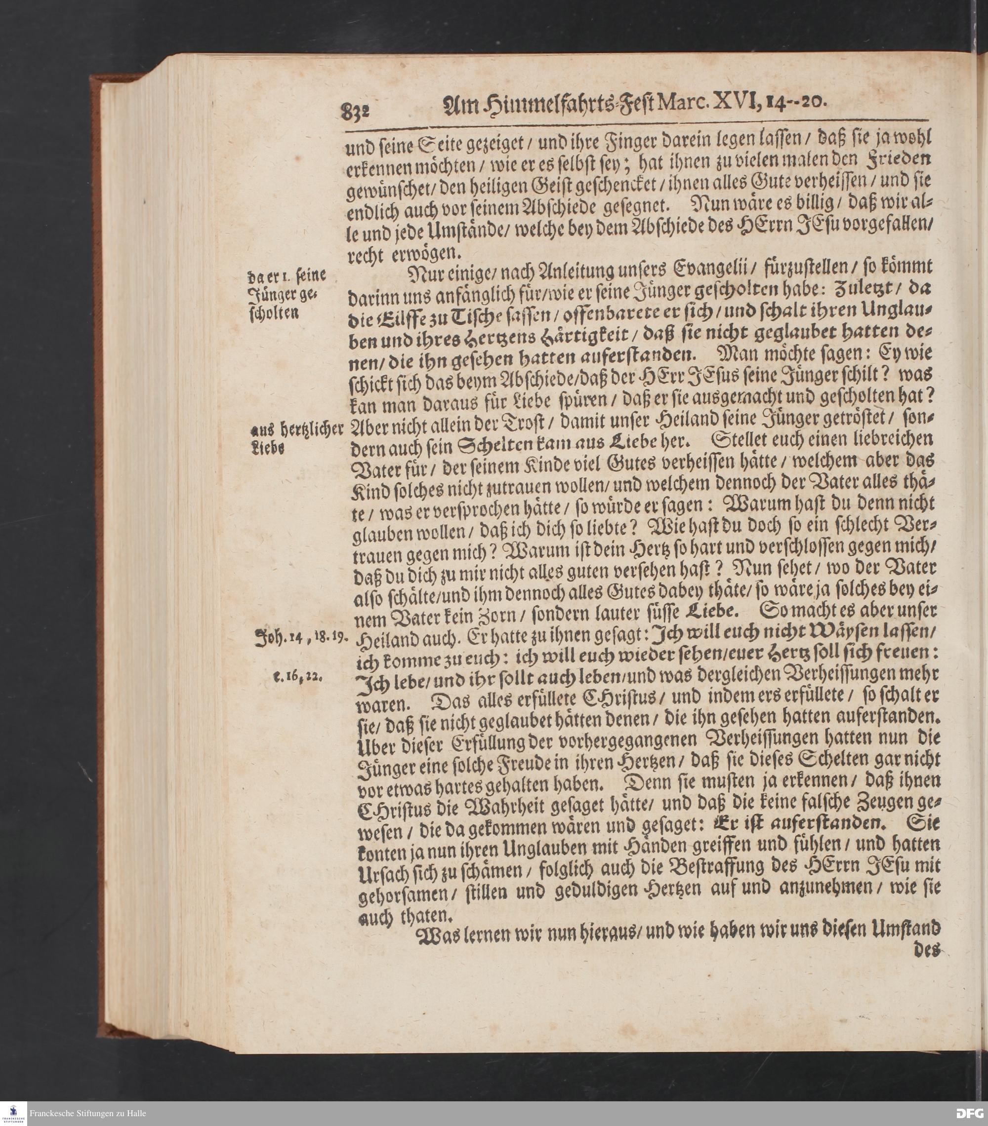 August Hermann Franckens S.Theol.Prof.und Past. Sonn= Fest= und Apostel=Tags=-Predigten / Darinnen Die zum wahren Christenthum gehörige nöthigste und vornehmste Materien abgehandelt sind; Nunmehro von neuen wieder durchgesehen / und mit einigen Predigten vermehret / Nebst den darzu nützlichen Registern. Die vierte EDITION. HALLE / gedruckt und verlegt im Wäysen=Hause / MDCCXV. Mit Königl.Preuß.und Churfl.Brandenb.Privil.