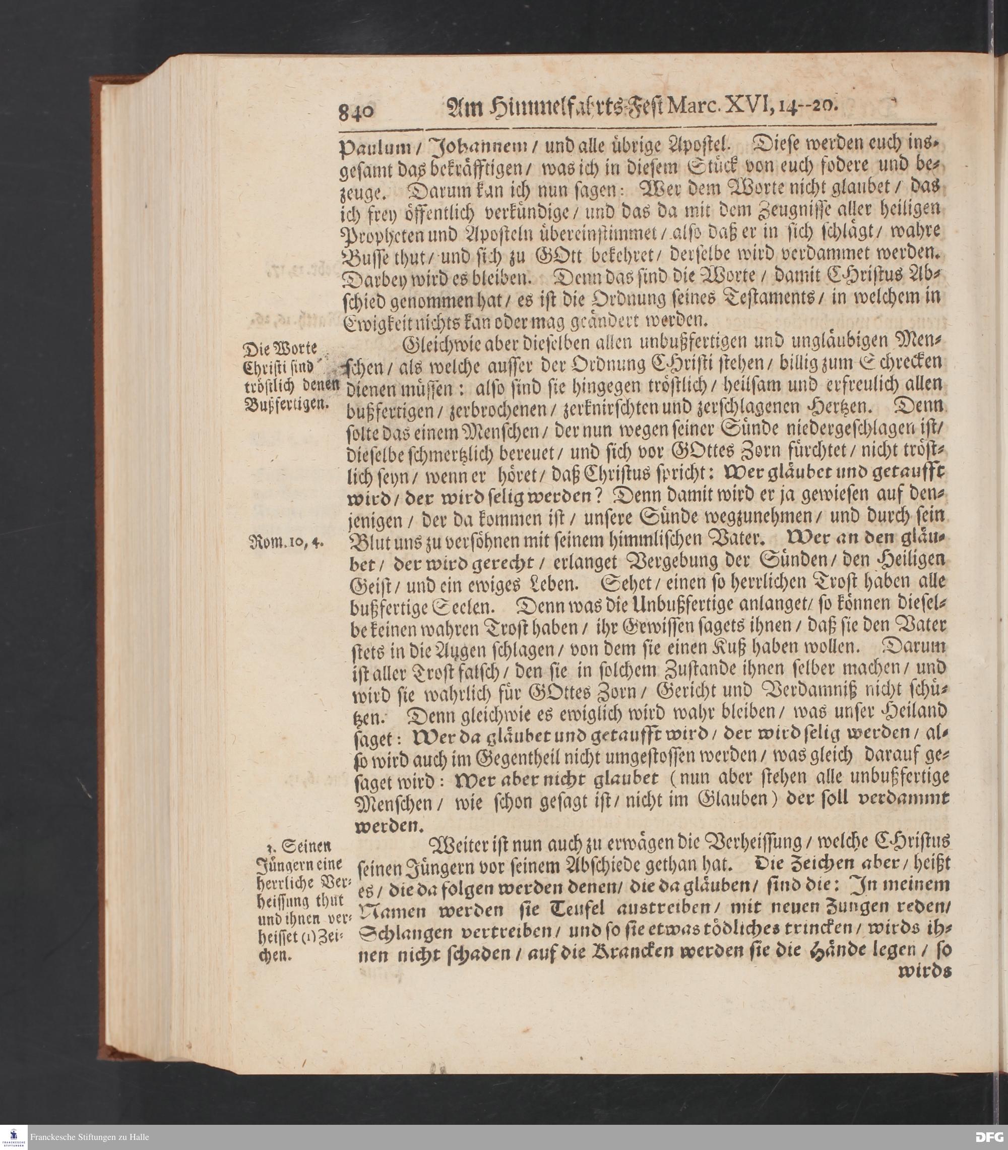 August Hermann Franckens S.Theol.Prof.und Past. Sonn= Fest= und Apostel=Tags=-Predigten / Darinnen Die zum wahren Christenthum gehörige nöthigste und vornehmste Materien abgehandelt sind; Nunmehro von neuen wieder durchgesehen / und mit einigen Predigten vermehret / Nebst den darzu nützlichen Registern. Die vierte EDITION. HALLE / gedruckt und verlegt im Wäysen=Hause / MDCCXV. Mit Königl.Preuß.und Churfl.Brandenb.Privil.