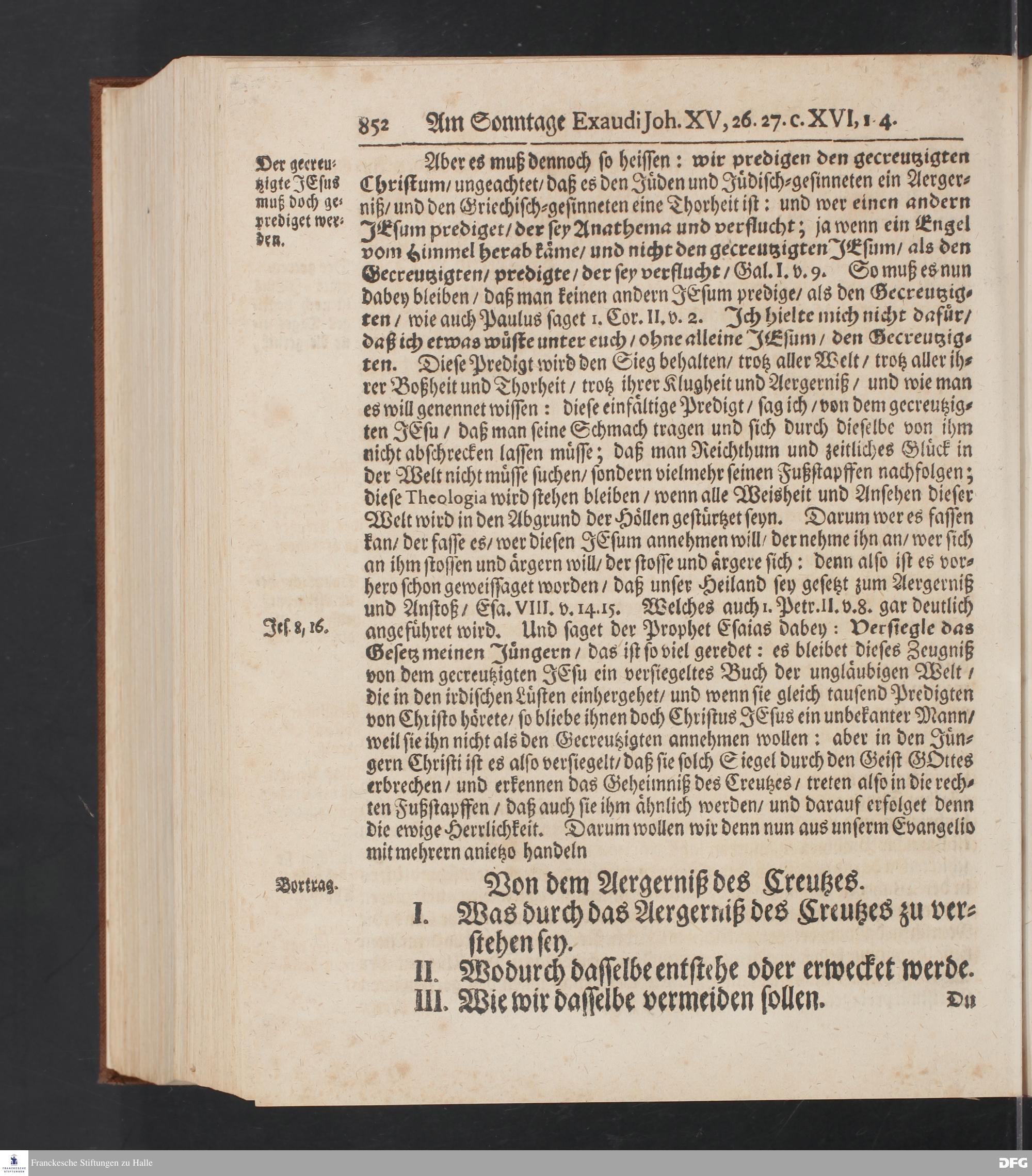 August Hermann Franckens S.Theol.Prof.und Past. Sonn= Fest= und Apostel=Tags=-Predigten / Darinnen Die zum wahren Christenthum gehörige nöthigste und vornehmste Materien abgehandelt sind; Nunmehro von neuen wieder durchgesehen / und mit einigen Predigten vermehret / Nebst den darzu nützlichen Registern. Die vierte EDITION. HALLE / gedruckt und verlegt im Wäysen=Hause / MDCCXV. Mit Königl.Preuß.und Churfl.Brandenb.Privil.