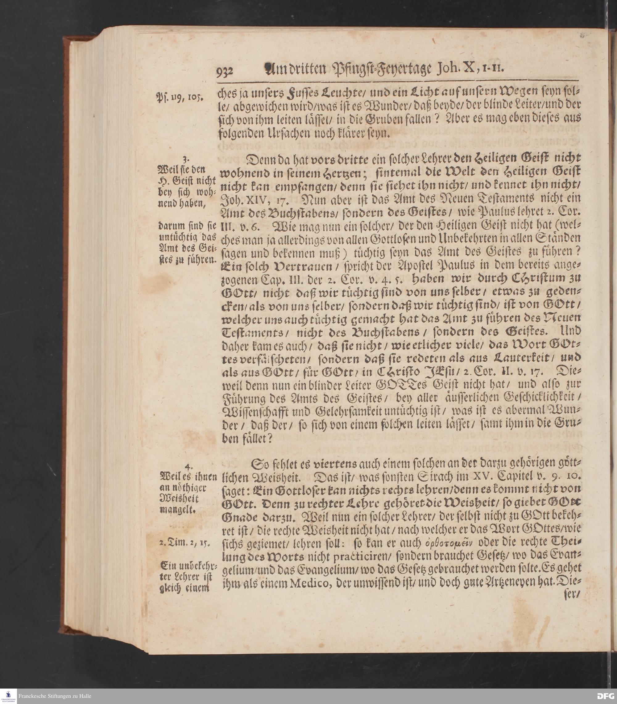 August Hermann Franckens S.Theol.Prof.und Past. Sonn= Fest= und Apostel=Tags=-Predigten / Darinnen Die zum wahren Christenthum gehörige nöthigste und vornehmste Materien abgehandelt sind; Nunmehro von neuen wieder durchgesehen / und mit einigen Predigten vermehret / Nebst den darzu nützlichen Registern. Die vierte EDITION. HALLE / gedruckt und verlegt im Wäysen=Hause / MDCCXV. Mit Königl.Preuß.und Churfl.Brandenb.Privil.