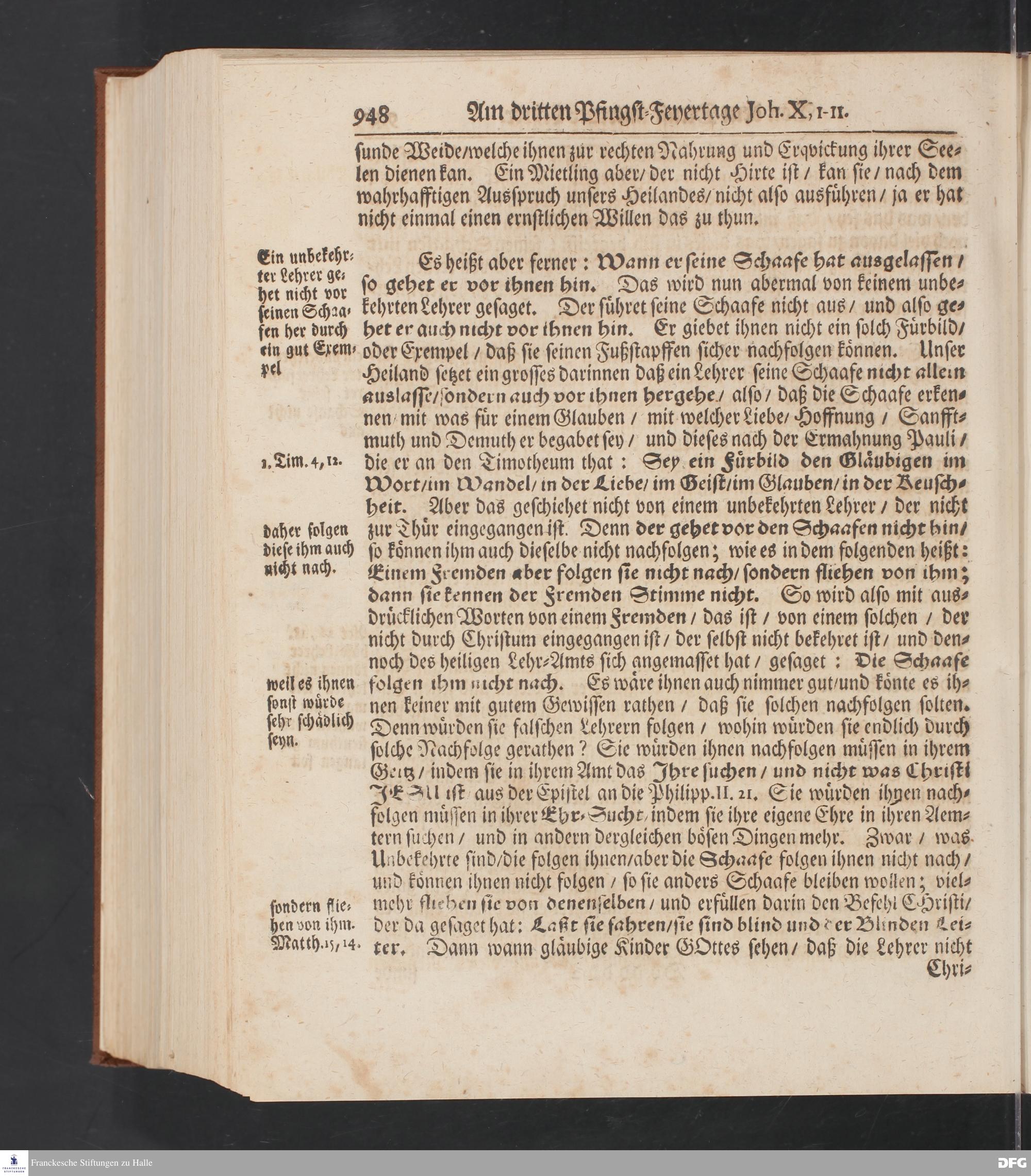 August Hermann Franckens S.Theol.Prof.und Past. Sonn= Fest= und Apostel=Tags=-Predigten / Darinnen Die zum wahren Christenthum gehörige nöthigste und vornehmste Materien abgehandelt sind; Nunmehro von neuen wieder durchgesehen / und mit einigen Predigten vermehret / Nebst den darzu nützlichen Registern. Die vierte EDITION. HALLE / gedruckt und verlegt im Wäysen=Hause / MDCCXV. Mit Königl.Preuß.und Churfl.Brandenb.Privil.