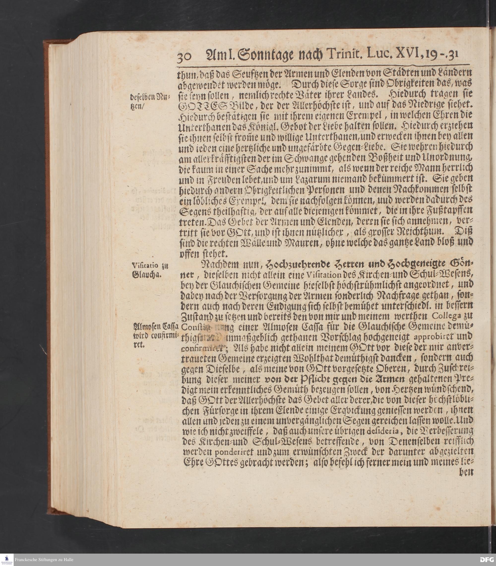 August Hermann Franckens S.Theol.Prof.und Past. Sonn= Fest= und Apostel=Tags=-Predigten / Darinnen Die zum wahren Christenthum gehörige nöthigste und vornehmste Materien abgehandelt sind; Nunmehro von neuen wieder durchgesehen / und mit einigen Predigten vermehret / Nebst den darzu nützlichen Registern. Die vierte EDITION. HALLE / gedruckt und verlegt im Wäysen=Hause / MDCCXV. Mit Königl.Preuß.und Churfl.Brandenb.Privil.