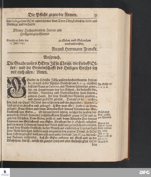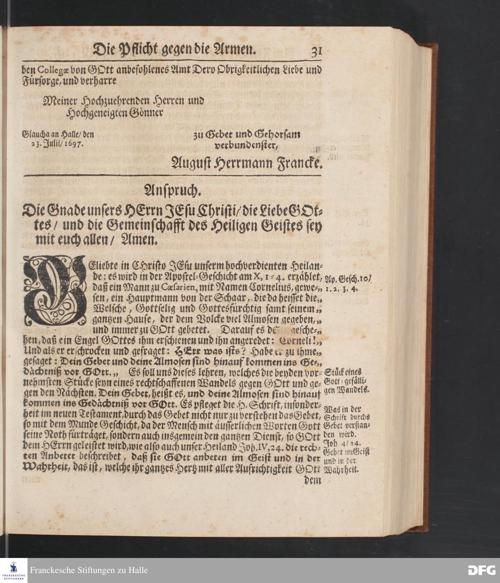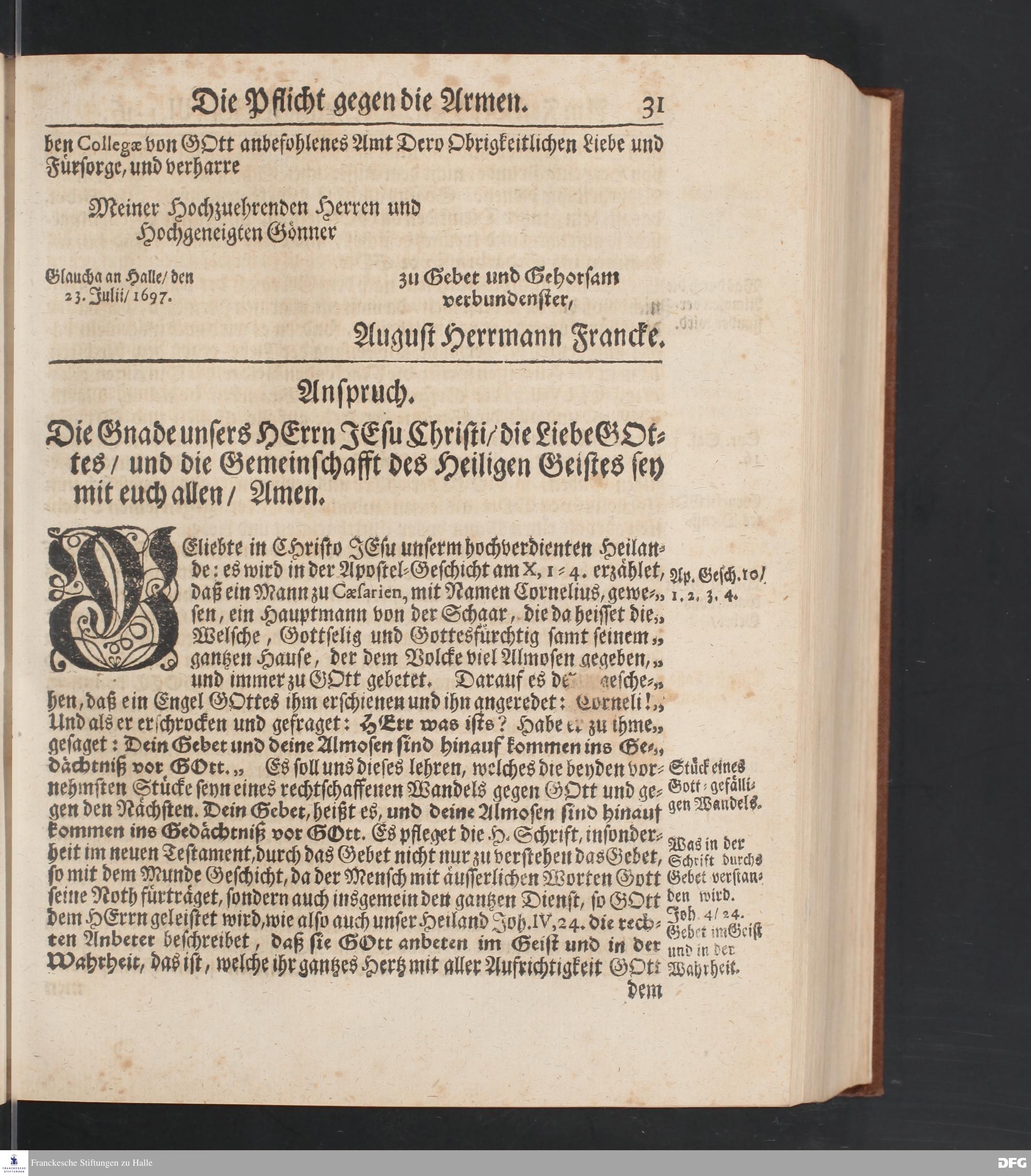 August Hermann Franckens S.Theol.Prof.und Past. Sonn= Fest= und Apostel=Tags=-Predigten / Darinnen Die zum wahren Christenthum gehörige nöthigste und vornehmste Materien abgehandelt sind; Nunmehro von neuen wieder durchgesehen / und mit einigen Predigten vermehret / Nebst den darzu nützlichen Registern. Die vierte EDITION. HALLE / gedruckt und verlegt im Wäysen=Hause / MDCCXV. Mit Königl.Preuß.und Churfl.Brandenb.Privil.