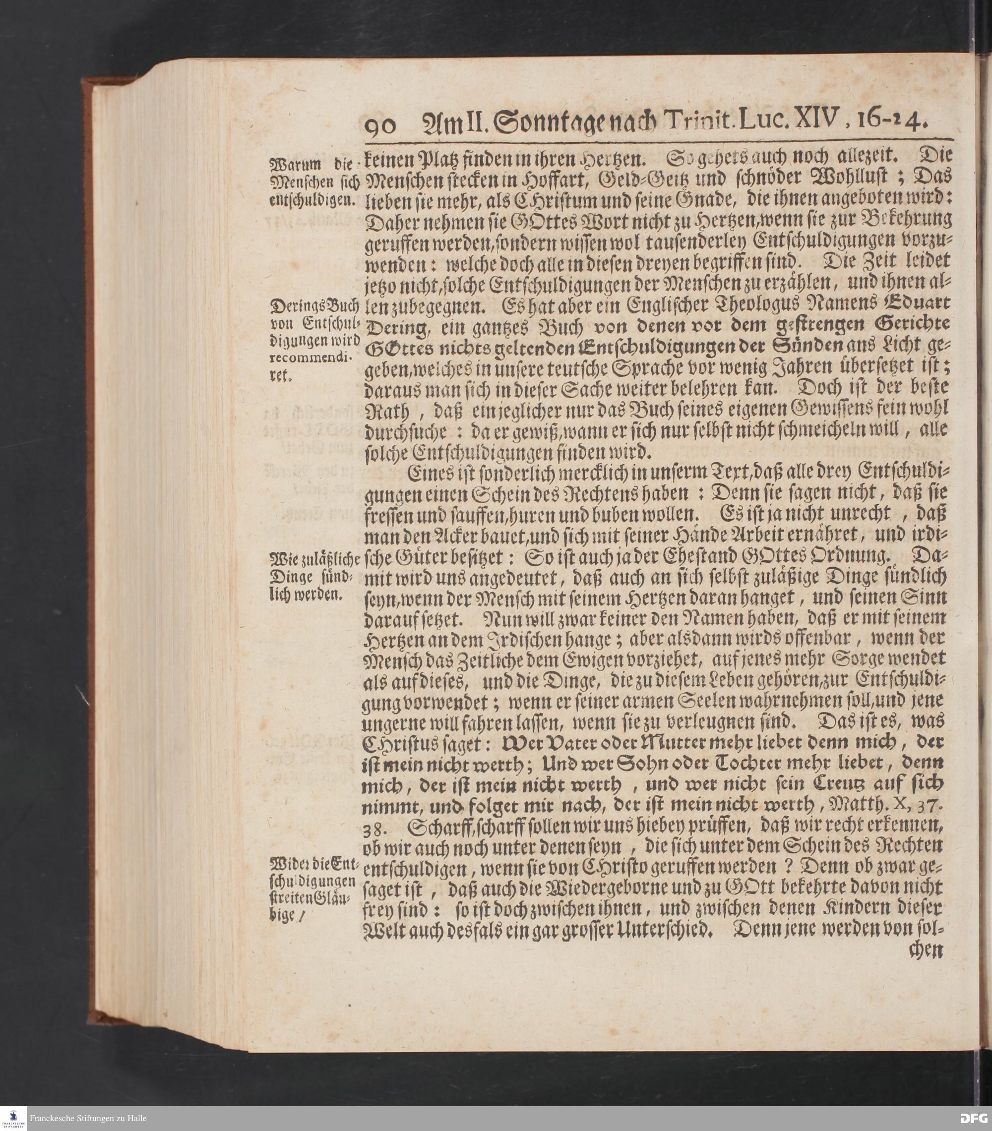 August Hermann Franckens S.Theol.Prof.und Past. Sonn= Fest= und Apostel=Tags=-Predigten / Darinnen Die zum wahren Christenthum gehörige nöthigste und vornehmste Materien abgehandelt sind; Nunmehro von neuen wieder durchgesehen / und mit einigen Predigten vermehret / Nebst den darzu nützlichen Registern. Die vierte EDITION. HALLE / gedruckt und verlegt im Wäysen=Hause / MDCCXV. Mit Königl.Preuß.und Churfl.Brandenb.Privil.