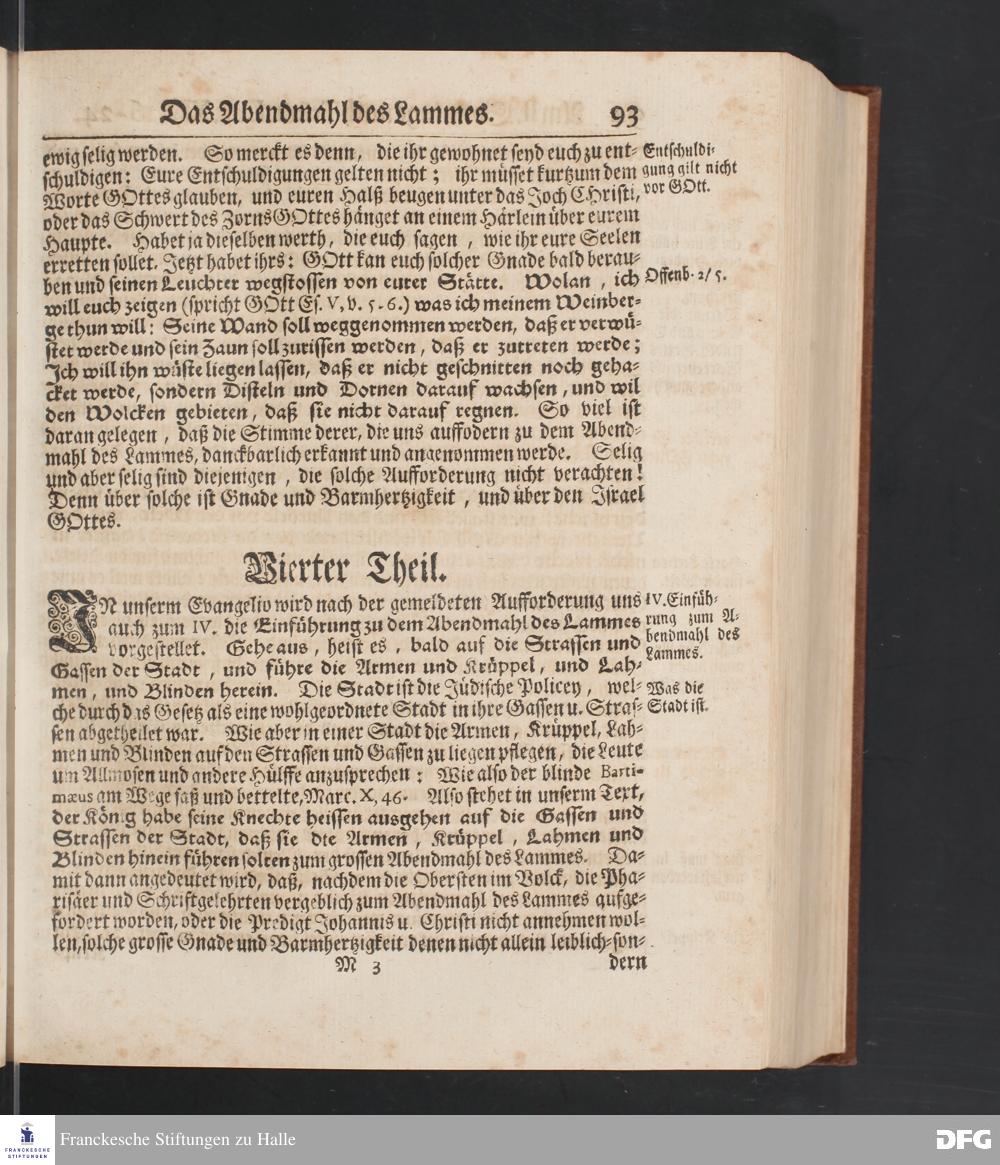 August Hermann Franckens S.Theol.Prof.und Past. Sonn= Fest= und Apostel=Tags=-Predigten / Darinnen Die zum wahren Christenthum gehörige nöthigste und vornehmste Materien abgehandelt sind; Nunmehro von neuen wieder durchgesehen / und mit einigen Predigten vermehret / Nebst den darzu nützlichen Registern. Die vierte EDITION. HALLE / gedruckt und verlegt im Wäysen=Hause / MDCCXV. Mit Königl.Preuß.und Churfl.Brandenb.Privil.