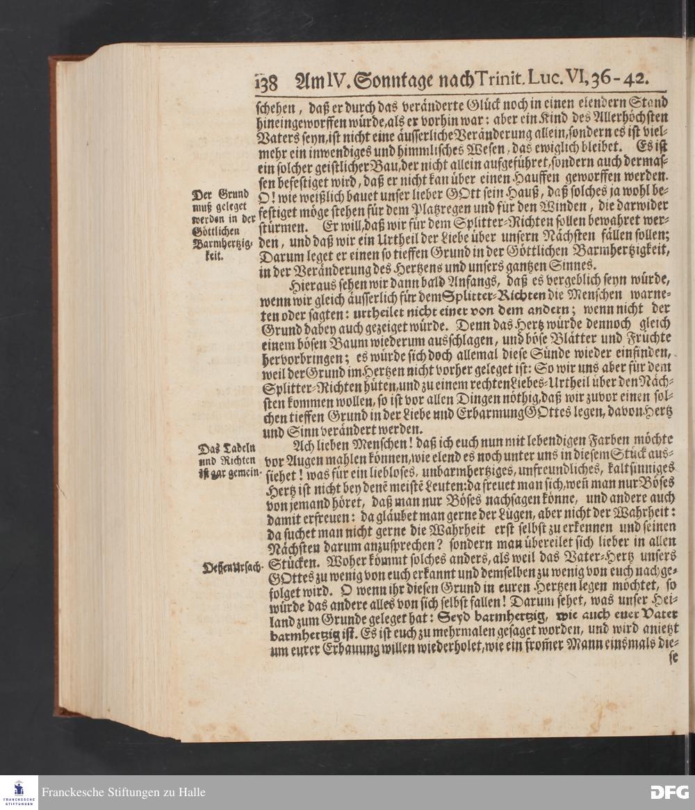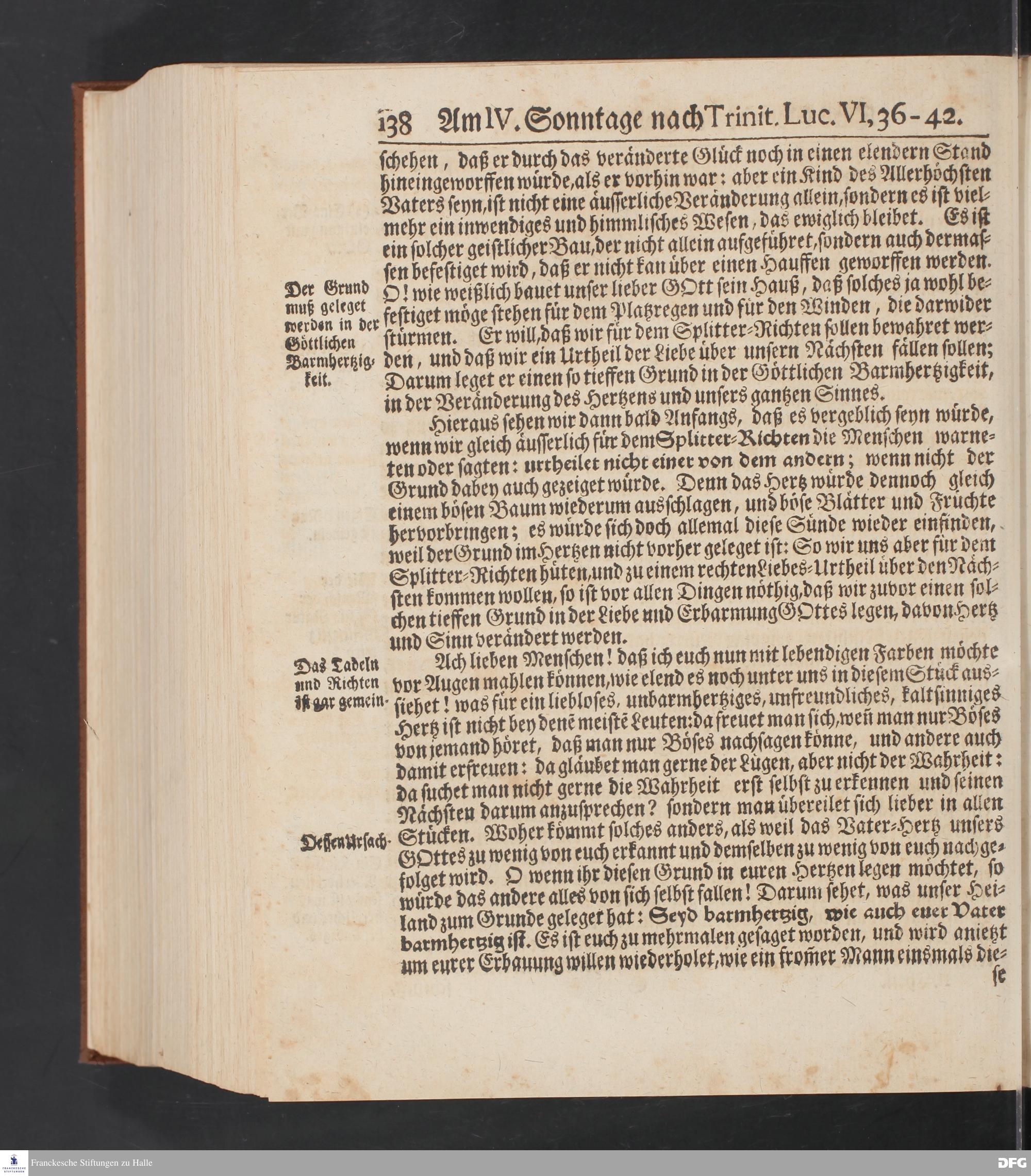 August Hermann Franckens S.Theol.Prof.und Past. Sonn= Fest= und Apostel=Tags=-Predigten / Darinnen Die zum wahren Christenthum gehörige nöthigste und vornehmste Materien abgehandelt sind; Nunmehro von neuen wieder durchgesehen / und mit einigen Predigten vermehret / Nebst den darzu nützlichen Registern. Die vierte EDITION. HALLE / gedruckt und verlegt im Wäysen=Hause / MDCCXV. Mit Königl.Preuß.und Churfl.Brandenb.Privil.