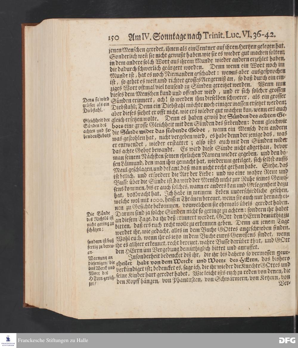 August Hermann Franckens S.Theol.Prof.und Past. Sonn= Fest= und Apostel=Tags=-Predigten / Darinnen Die zum wahren Christenthum gehörige nöthigste und vornehmste Materien abgehandelt sind; Nunmehro von neuen wieder durchgesehen / und mit einigen Predigten vermehret / Nebst den darzu nützlichen Registern. Die vierte EDITION. HALLE / gedruckt und verlegt im Wäysen=Hause / MDCCXV. Mit Königl.Preuß.und Churfl.Brandenb.Privil.
