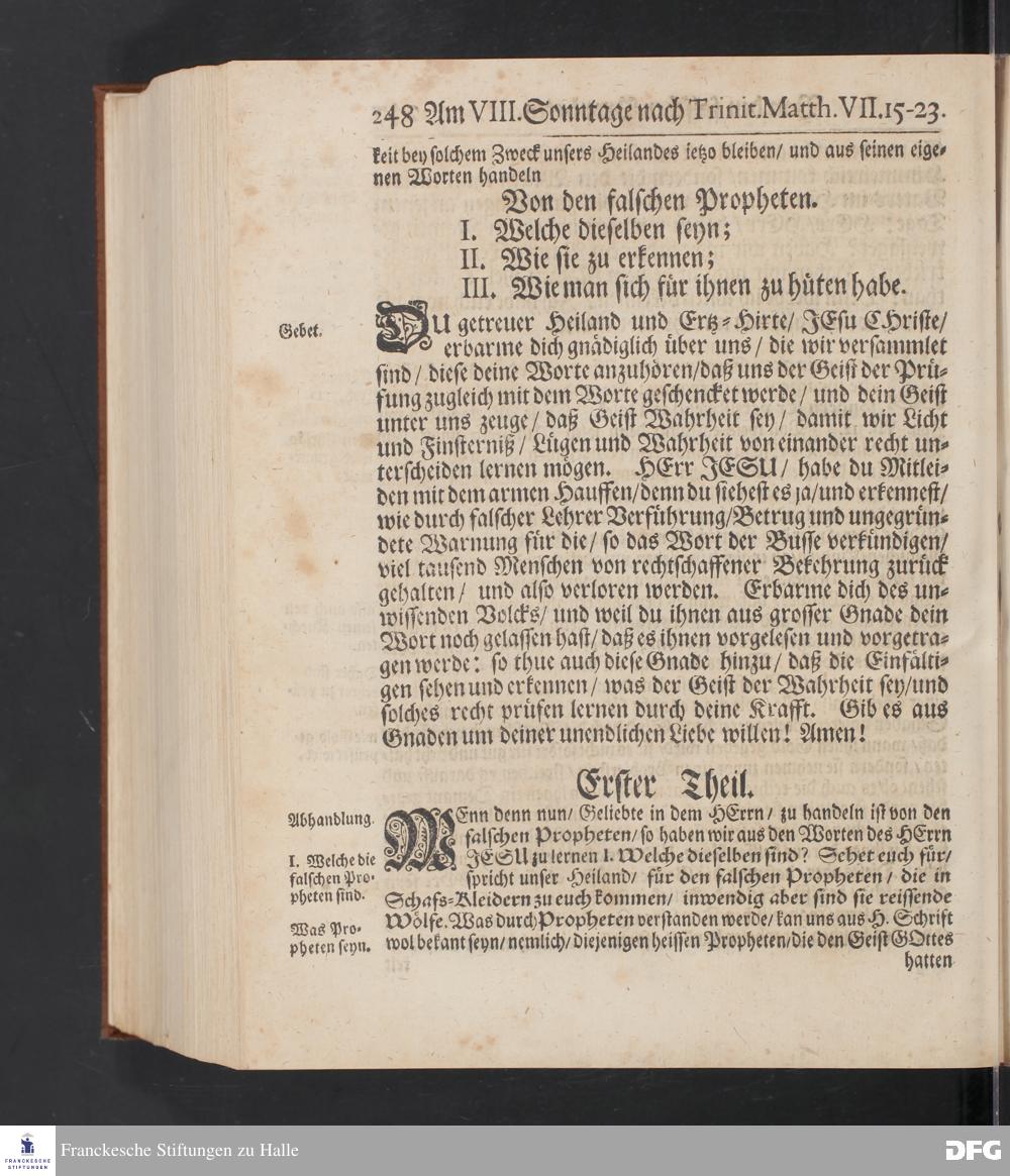 August Hermann Franckens S.Theol.Prof.und Past. Sonn= Fest= und Apostel=Tags=-Predigten / Darinnen Die zum wahren Christenthum gehörige nöthigste und vornehmste Materien abgehandelt sind; Nunmehro von neuen wieder durchgesehen / und mit einigen Predigten vermehret / Nebst den darzu nützlichen Registern. Die vierte EDITION. HALLE / gedruckt und verlegt im Wäysen=Hause / MDCCXV. Mit Königl.Preuß.und Churfl.Brandenb.Privil.