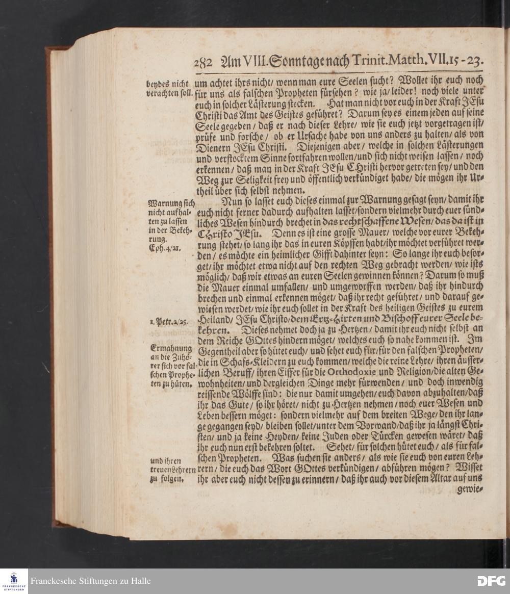 August Hermann Franckens S.Theol.Prof.und Past. Sonn= Fest= und Apostel=Tags=-Predigten / Darinnen Die zum wahren Christenthum gehörige nöthigste und vornehmste Materien abgehandelt sind; Nunmehro von neuen wieder durchgesehen / und mit einigen Predigten vermehret / Nebst den darzu nützlichen Registern. Die vierte EDITION. HALLE / gedruckt und verlegt im Wäysen=Hause / MDCCXV. Mit Königl.Preuß.und Churfl.Brandenb.Privil.