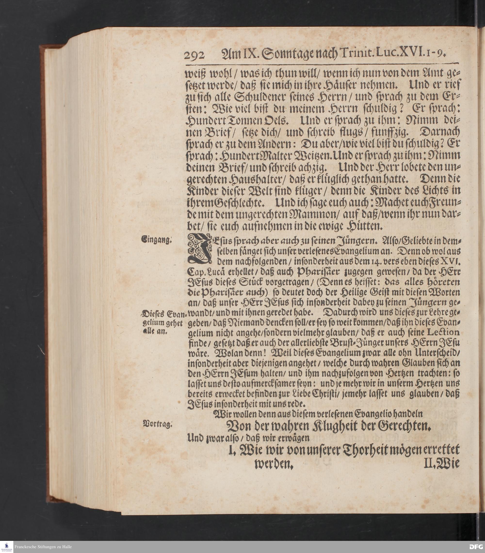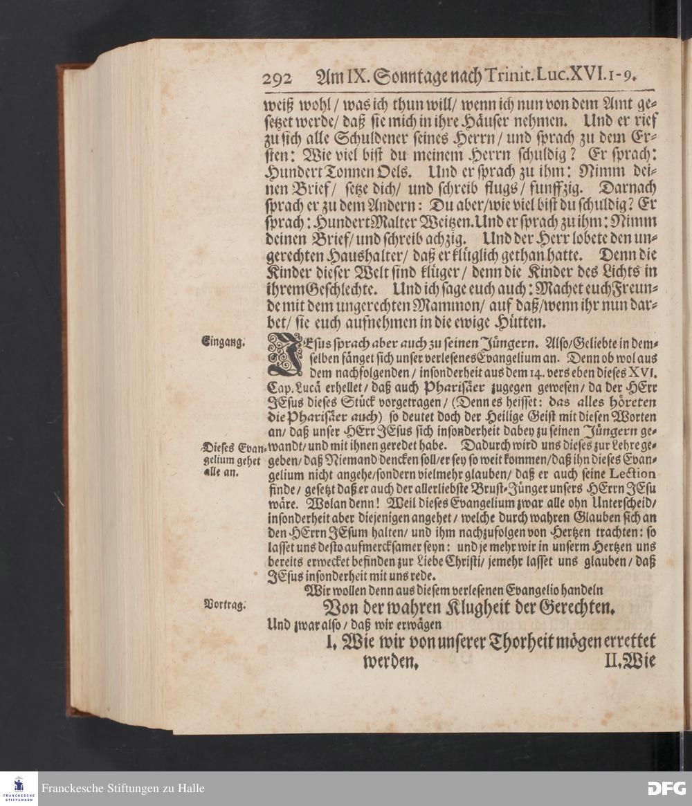 August Hermann Franckens S.Theol.Prof.und Past. Sonn= Fest= und Apostel=Tags=-Predigten / Darinnen Die zum wahren Christenthum gehörige nöthigste und vornehmste Materien abgehandelt sind; Nunmehro von neuen wieder durchgesehen / und mit einigen Predigten vermehret / Nebst den darzu nützlichen Registern. Die vierte EDITION. HALLE / gedruckt und verlegt im Wäysen=Hause / MDCCXV. Mit Königl.Preuß.und Churfl.Brandenb.Privil.