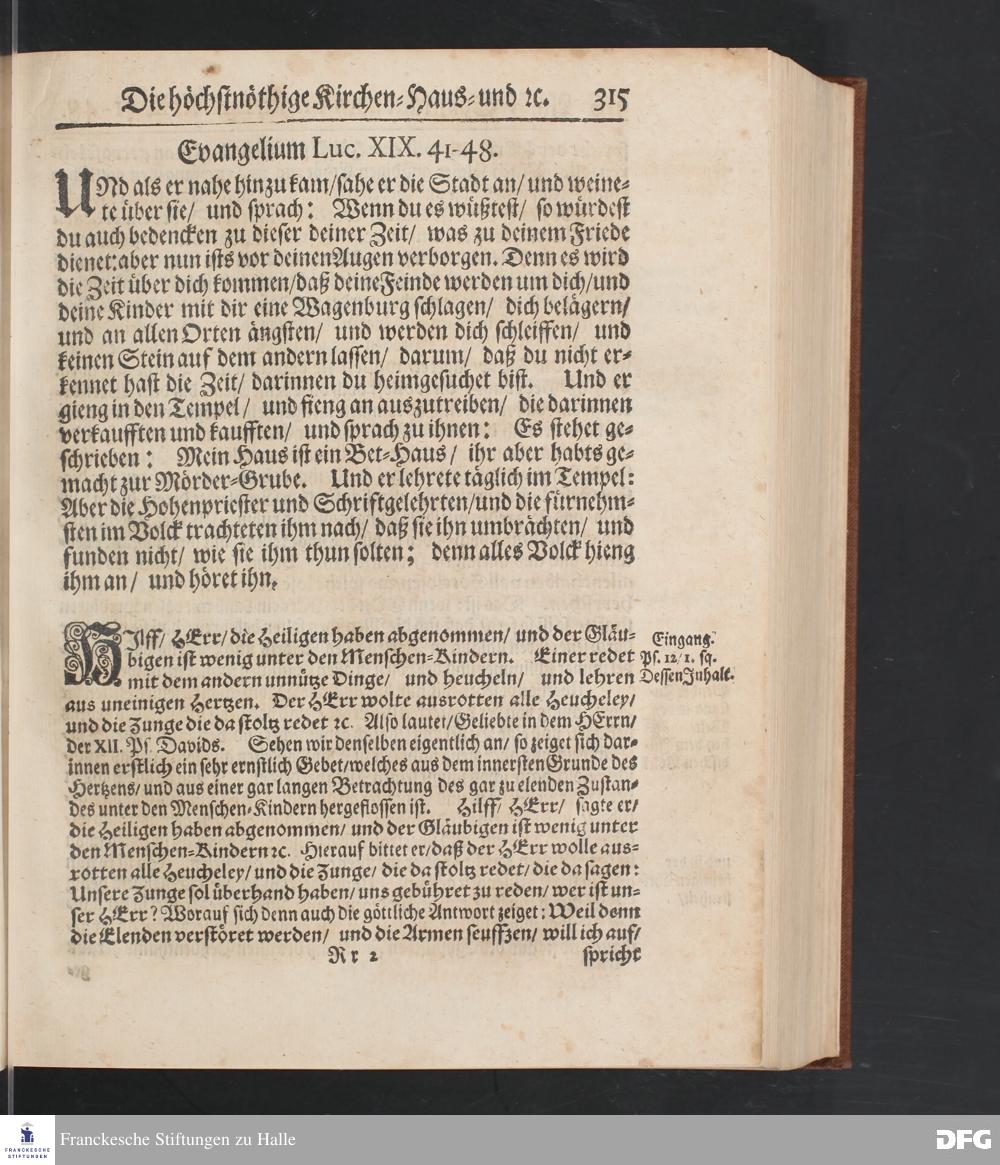 August Hermann Franckens S.Theol.Prof.und Past. Sonn= Fest= und Apostel=Tags=-Predigten / Darinnen Die zum wahren Christenthum gehörige nöthigste und vornehmste Materien abgehandelt sind; Nunmehro von neuen wieder durchgesehen / und mit einigen Predigten vermehret / Nebst den darzu nützlichen Registern. Die vierte EDITION. HALLE / gedruckt und verlegt im Wäysen=Hause / MDCCXV. Mit Königl.Preuß.und Churfl.Brandenb.Privil.