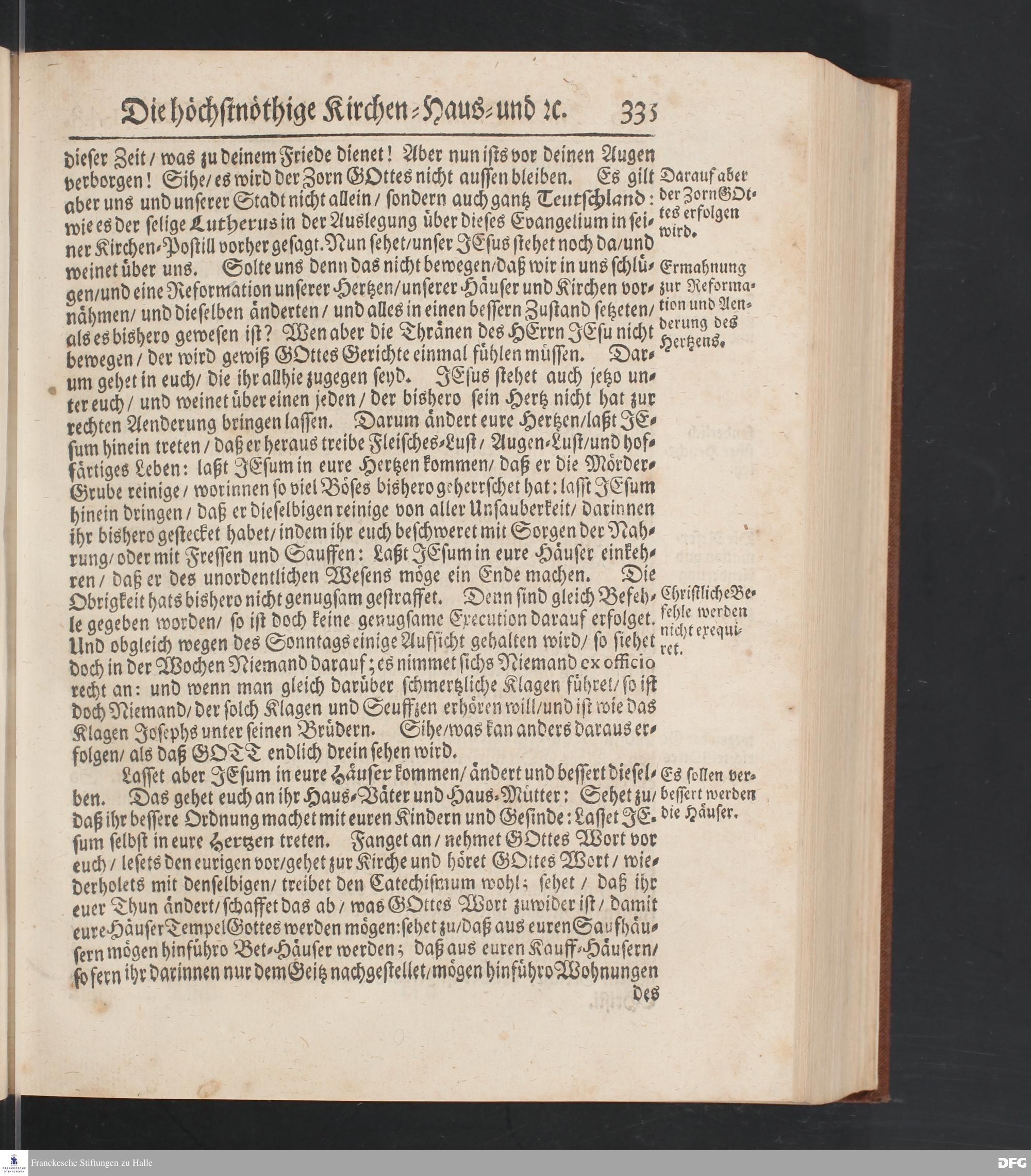 August Hermann Franckens S.Theol.Prof.und Past. Sonn= Fest= und Apostel=Tags=-Predigten / Darinnen Die zum wahren Christenthum gehörige nöthigste und vornehmste Materien abgehandelt sind; Nunmehro von neuen wieder durchgesehen / und mit einigen Predigten vermehret / Nebst den darzu nützlichen Registern. Die vierte EDITION. HALLE / gedruckt und verlegt im Wäysen=Hause / MDCCXV. Mit Königl.Preuß.und Churfl.Brandenb.Privil.