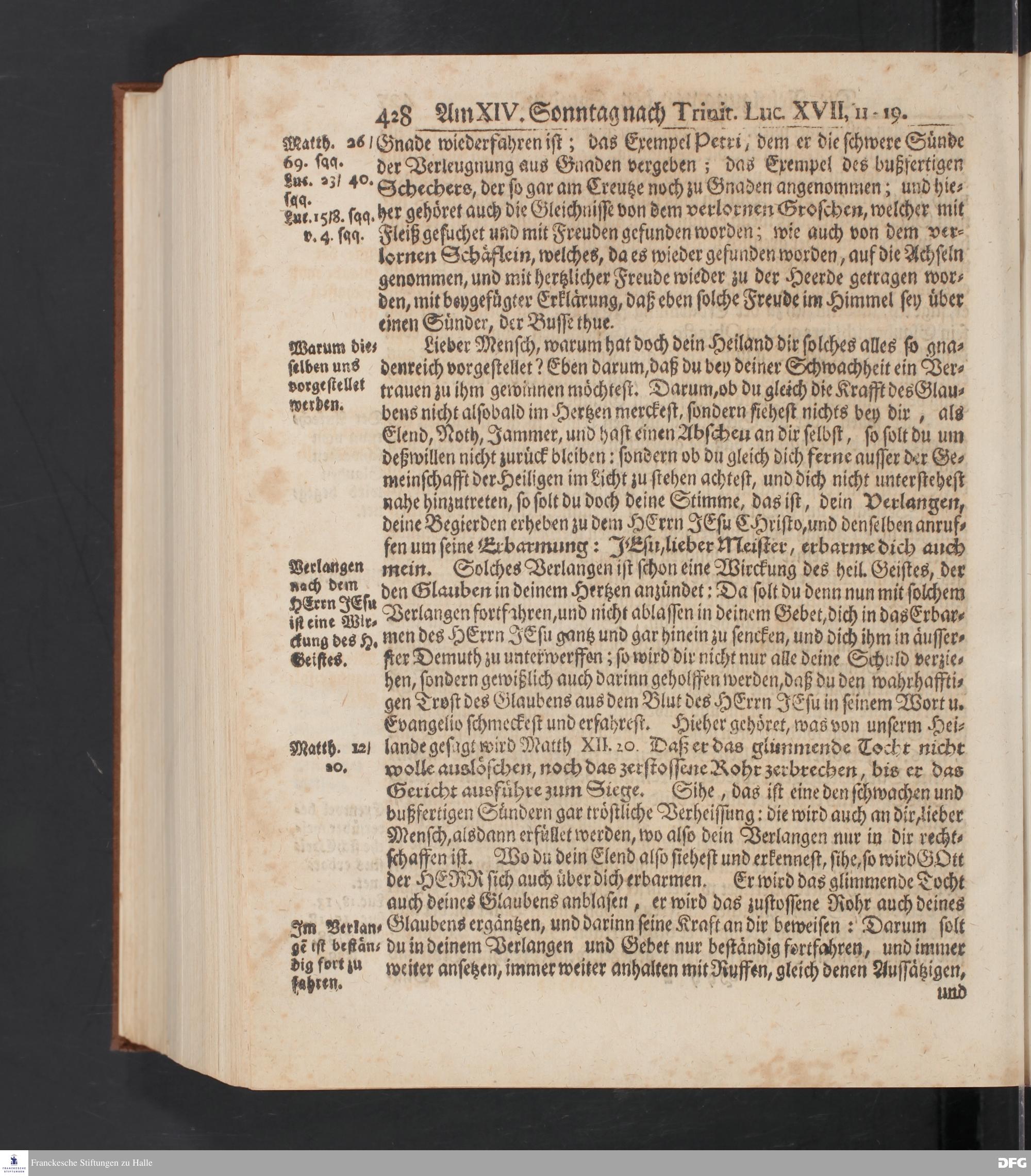 August Hermann Franckens S.Theol.Prof.und Past. Sonn= Fest= und Apostel=Tags=-Predigten / Darinnen Die zum wahren Christenthum gehörige nöthigste und vornehmste Materien abgehandelt sind; Nunmehro von neuen wieder durchgesehen / und mit einigen Predigten vermehret / Nebst den darzu nützlichen Registern. Die vierte EDITION. HALLE / gedruckt und verlegt im Wäysen=Hause / MDCCXV. Mit Königl.Preuß.und Churfl.Brandenb.Privil.