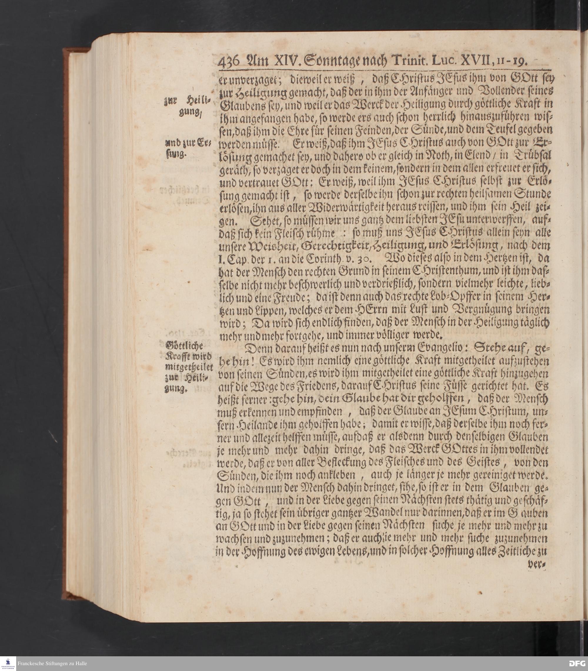 August Hermann Franckens S.Theol.Prof.und Past. Sonn= Fest= und Apostel=Tags=-Predigten / Darinnen Die zum wahren Christenthum gehörige nöthigste und vornehmste Materien abgehandelt sind; Nunmehro von neuen wieder durchgesehen / und mit einigen Predigten vermehret / Nebst den darzu nützlichen Registern. Die vierte EDITION. HALLE / gedruckt und verlegt im Wäysen=Hause / MDCCXV. Mit Königl.Preuß.und Churfl.Brandenb.Privil.
