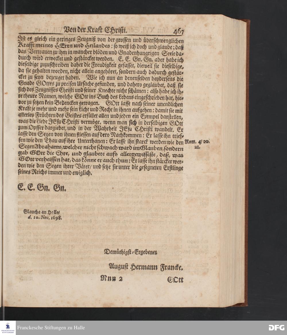 August Hermann Franckens S.Theol.Prof.und Past. Sonn= Fest= und Apostel=Tags=-Predigten / Darinnen Die zum wahren Christenthum gehörige nöthigste und vornehmste Materien abgehandelt sind; Nunmehro von neuen wieder durchgesehen / und mit einigen Predigten vermehret / Nebst den darzu nützlichen Registern. Die vierte EDITION. HALLE / gedruckt und verlegt im Wäysen=Hause / MDCCXV. Mit Königl.Preuß.und Churfl.Brandenb.Privil.