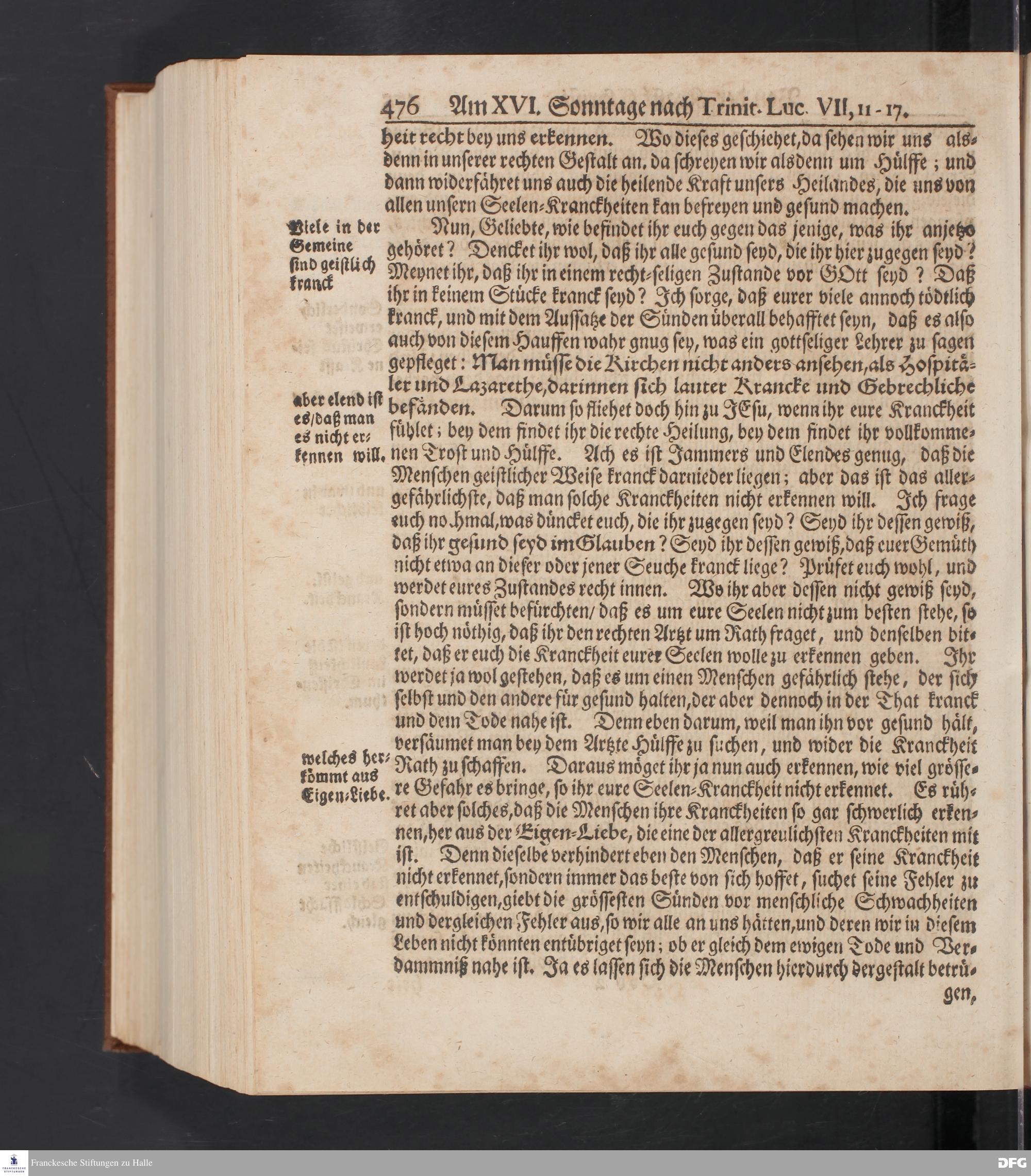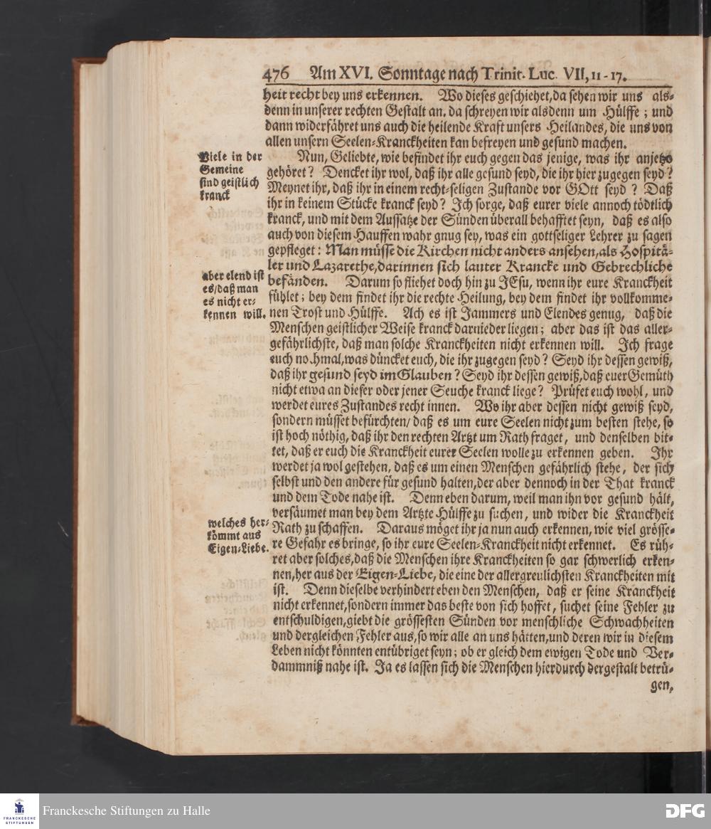 August Hermann Franckens S.Theol.Prof.und Past. Sonn= Fest= und Apostel=Tags=-Predigten / Darinnen Die zum wahren Christenthum gehörige nöthigste und vornehmste Materien abgehandelt sind; Nunmehro von neuen wieder durchgesehen / und mit einigen Predigten vermehret / Nebst den darzu nützlichen Registern. Die vierte EDITION. HALLE / gedruckt und verlegt im Wäysen=Hause / MDCCXV. Mit Königl.Preuß.und Churfl.Brandenb.Privil.