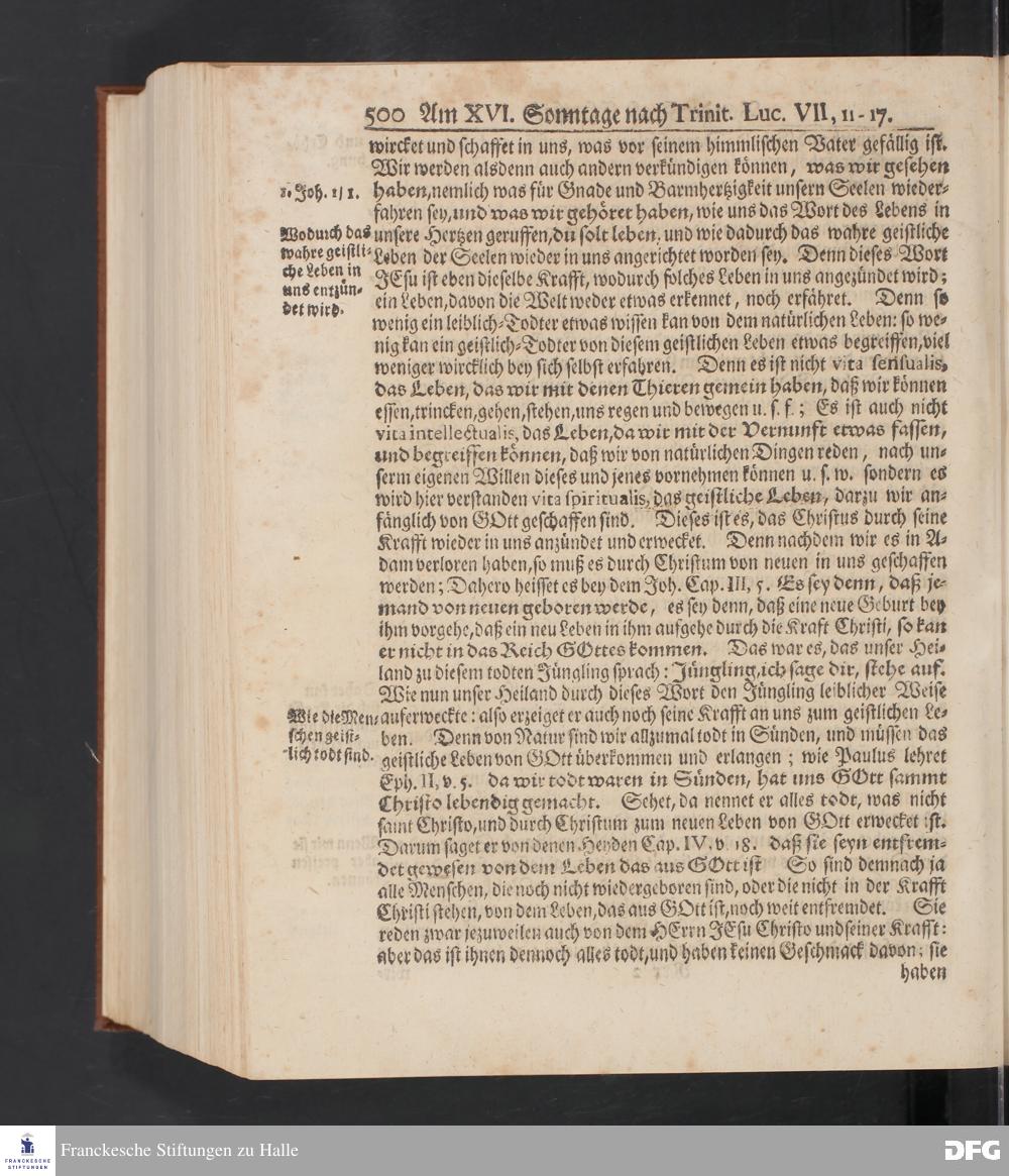 August Hermann Franckens S.Theol.Prof.und Past. Sonn= Fest= und Apostel=Tags=-Predigten / Darinnen Die zum wahren Christenthum gehörige nöthigste und vornehmste Materien abgehandelt sind; Nunmehro von neuen wieder durchgesehen / und mit einigen Predigten vermehret / Nebst den darzu nützlichen Registern. Die vierte EDITION. HALLE / gedruckt und verlegt im Wäysen=Hause / MDCCXV. Mit Königl.Preuß.und Churfl.Brandenb.Privil.