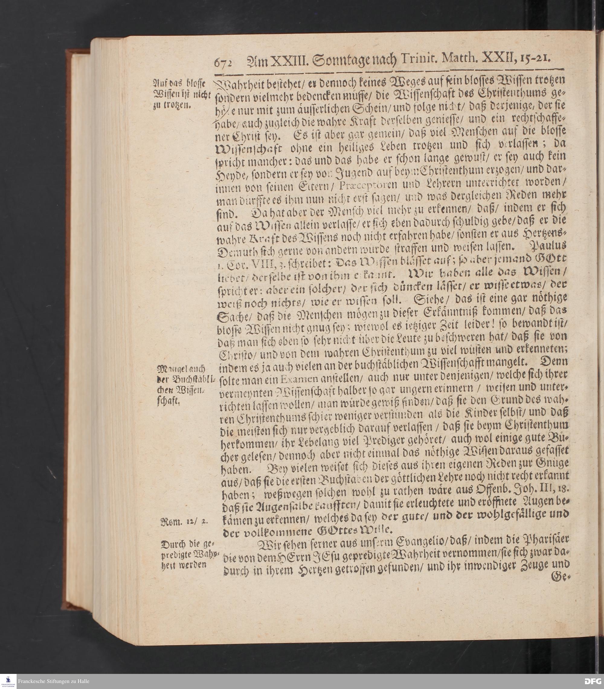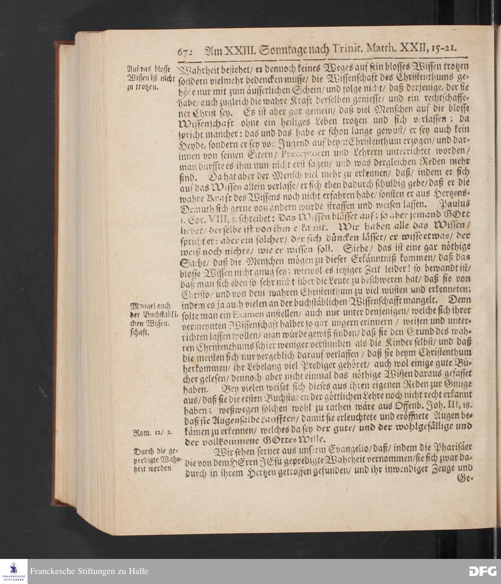 August Hermann Franckens S.Theol.Prof.und Past. Sonn= Fest= und Apostel=Tags=-Predigten / Darinnen Die zum wahren Christenthum gehörige nöthigste und vornehmste Materien abgehandelt sind; Nunmehro von neuen wieder durchgesehen / und mit einigen Predigten vermehret / Nebst den darzu nützlichen Registern. Die vierte EDITION. HALLE / gedruckt und verlegt im Wäysen=Hause / MDCCXV. Mit Königl.Preuß.und Churfl.Brandenb.Privil.