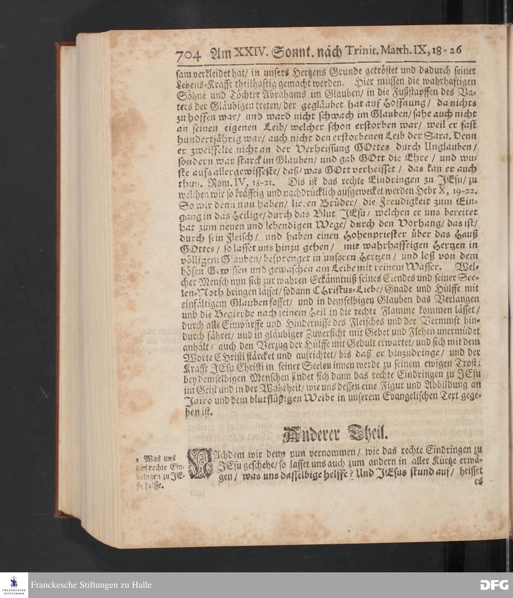 August Hermann Franckens S.Theol.Prof.und Past. Sonn= Fest= und Apostel=Tags=-Predigten / Darinnen Die zum wahren Christenthum gehörige nöthigste und vornehmste Materien abgehandelt sind; Nunmehro von neuen wieder durchgesehen / und mit einigen Predigten vermehret / Nebst den darzu nützlichen Registern. Die vierte EDITION. HALLE / gedruckt und verlegt im Wäysen=Hause / MDCCXV. Mit Königl.Preuß.und Churfl.Brandenb.Privil.