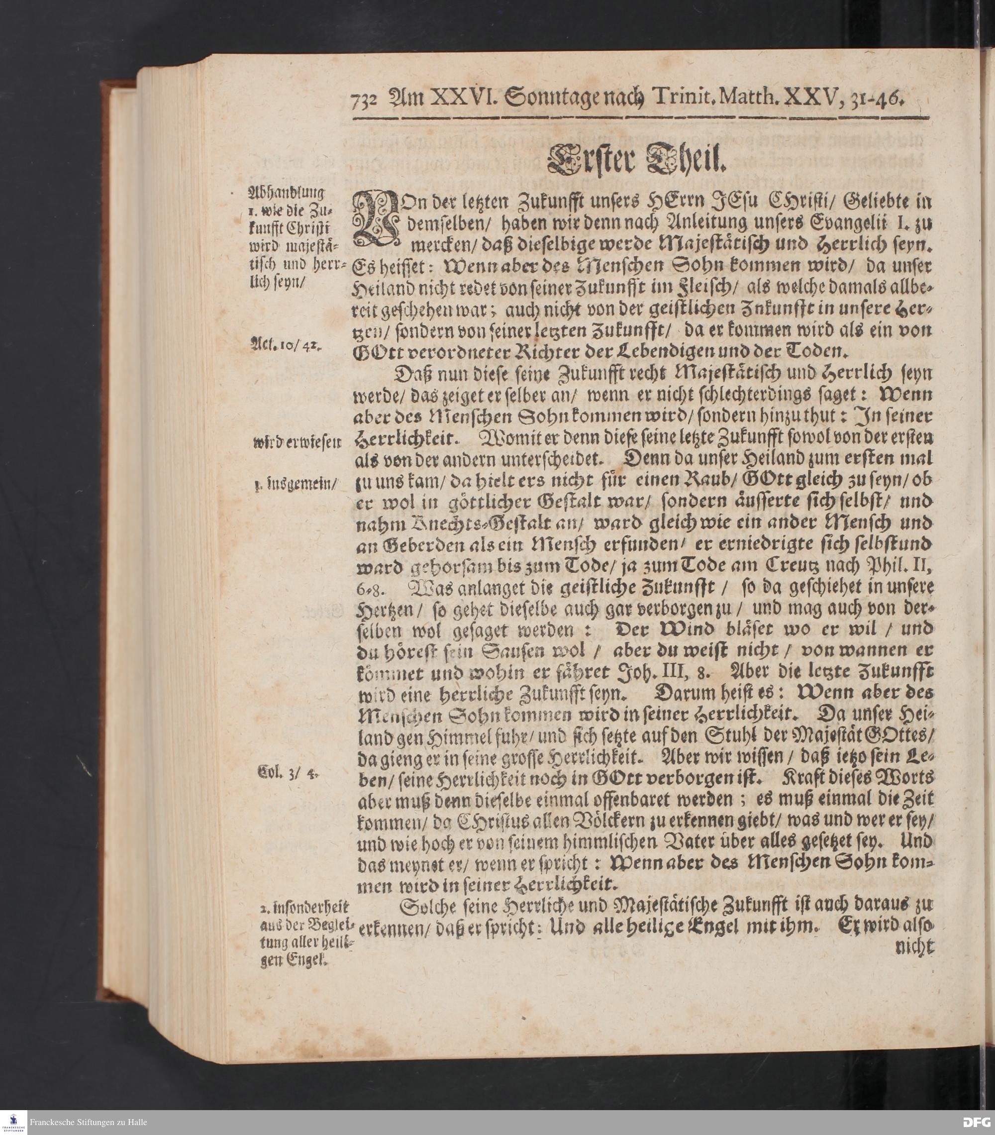 August Hermann Franckens S.Theol.Prof.und Past. Sonn= Fest= und Apostel=Tags=-Predigten / Darinnen Die zum wahren Christenthum gehörige nöthigste und vornehmste Materien abgehandelt sind; Nunmehro von neuen wieder durchgesehen / und mit einigen Predigten vermehret / Nebst den darzu nützlichen Registern. Die vierte EDITION. HALLE / gedruckt und verlegt im Wäysen=Hause / MDCCXV. Mit Königl.Preuß.und Churfl.Brandenb.Privil.