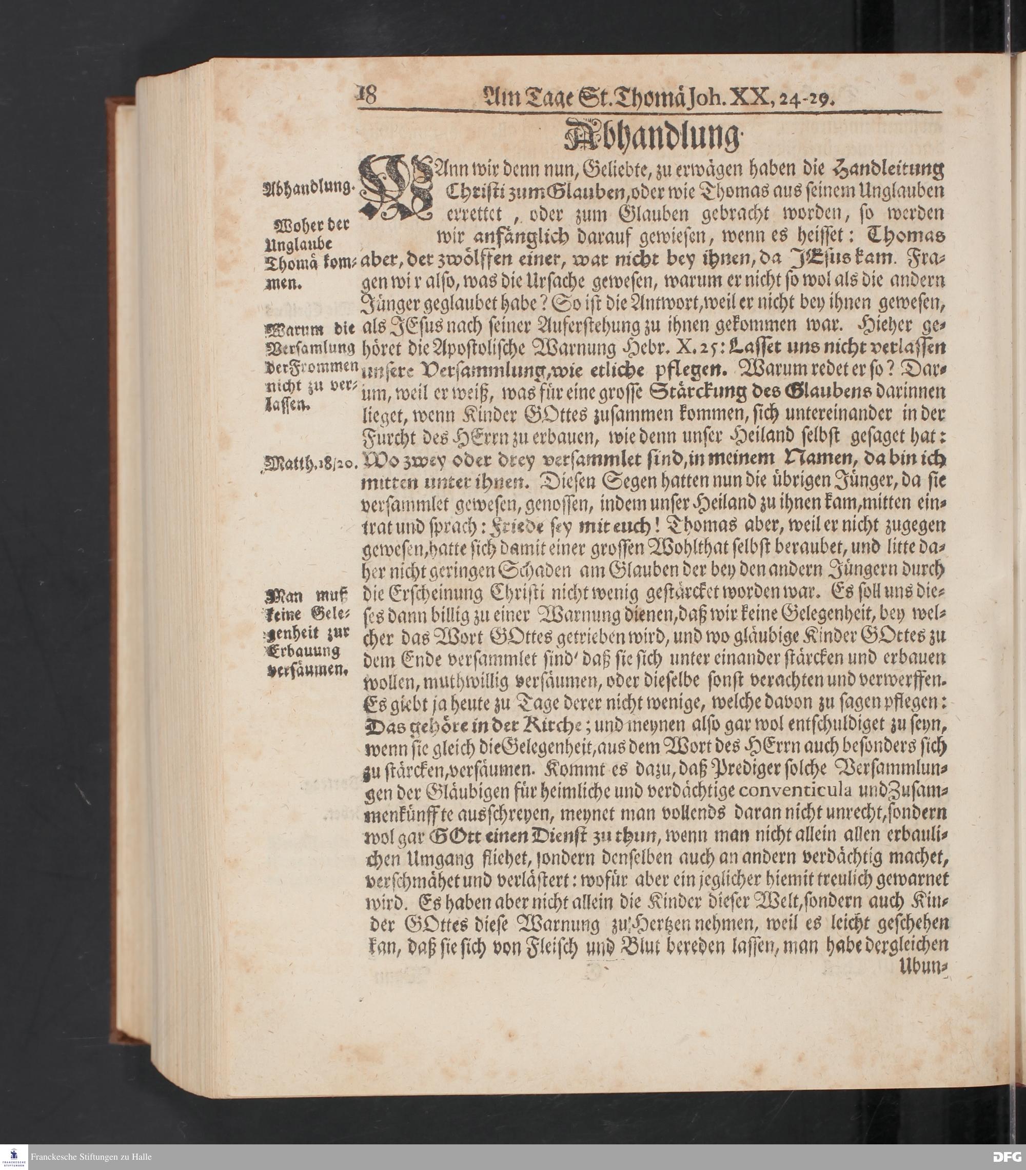 August Hermann Franckens S.Theol.Prof.und Past. Sonn= Fest= und Apostel=Tags=-Predigten / Darinnen Die zum wahren Christenthum gehörige nöthigste und vornehmste Materien abgehandelt sind; Nunmehro von neuen wieder durchgesehen / und mit einigen Predigten vermehret / Nebst den darzu nützlichen Registern. Die vierte EDITION. HALLE / gedruckt und verlegt im Wäysen=Hause / MDCCXV. Mit Königl.Preuß.und Churfl.Brandenb.Privil.