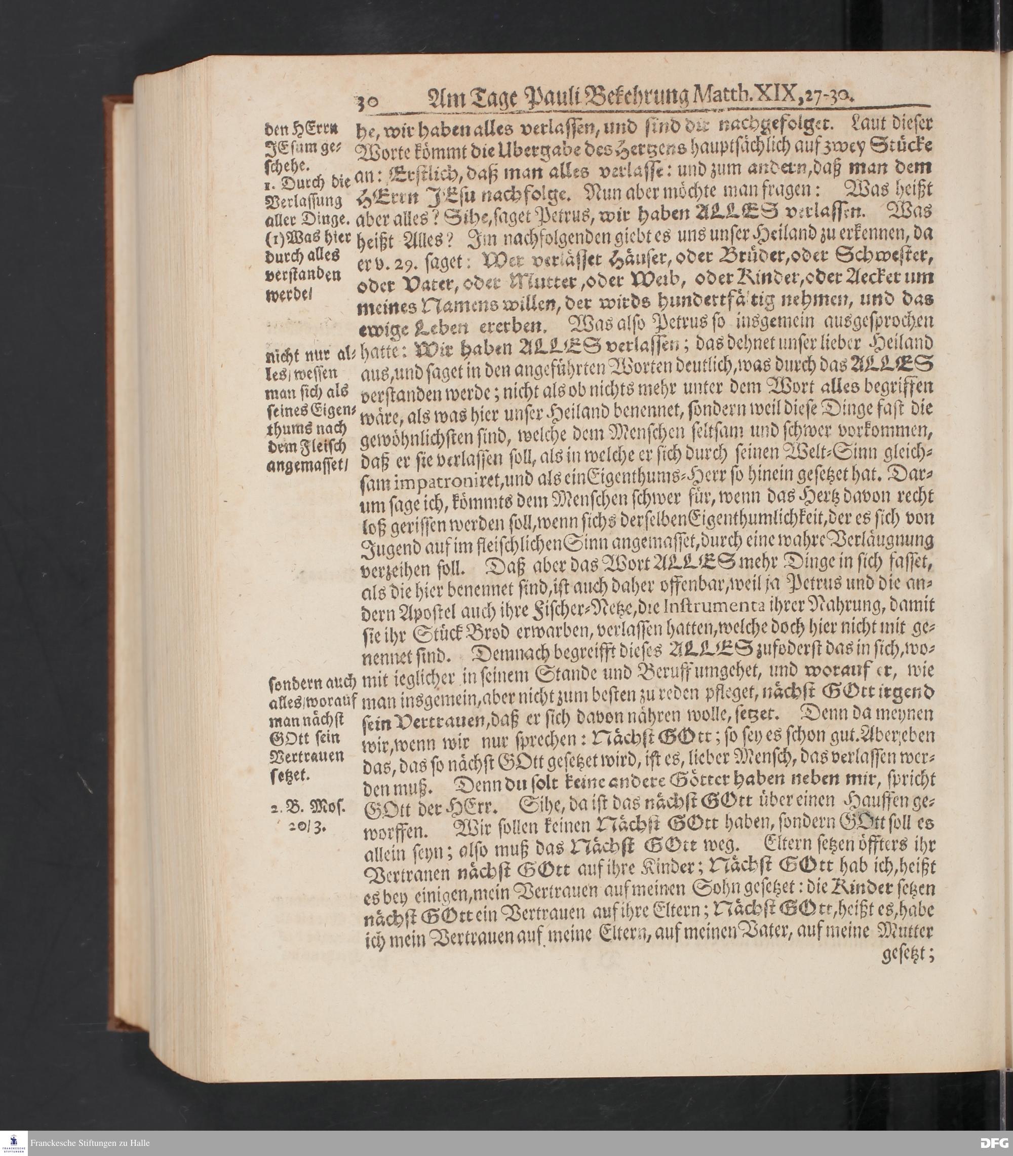 August Hermann Franckens S.Theol.Prof.und Past. Sonn= Fest= und Apostel=Tags=-Predigten / Darinnen Die zum wahren Christenthum gehörige nöthigste und vornehmste Materien abgehandelt sind; Nunmehro von neuen wieder durchgesehen / und mit einigen Predigten vermehret / Nebst den darzu nützlichen Registern. Die vierte EDITION. HALLE / gedruckt und verlegt im Wäysen=Hause / MDCCXV. Mit Königl.Preuß.und Churfl.Brandenb.Privil.
